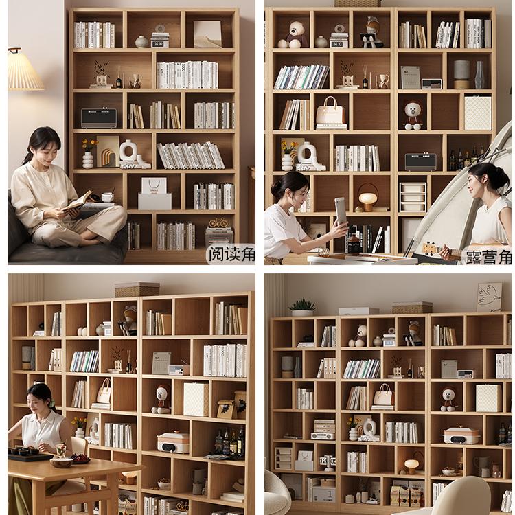 书架落地置物架实木一体靠墙书柜格子自由组合简易家用客厅储物柜