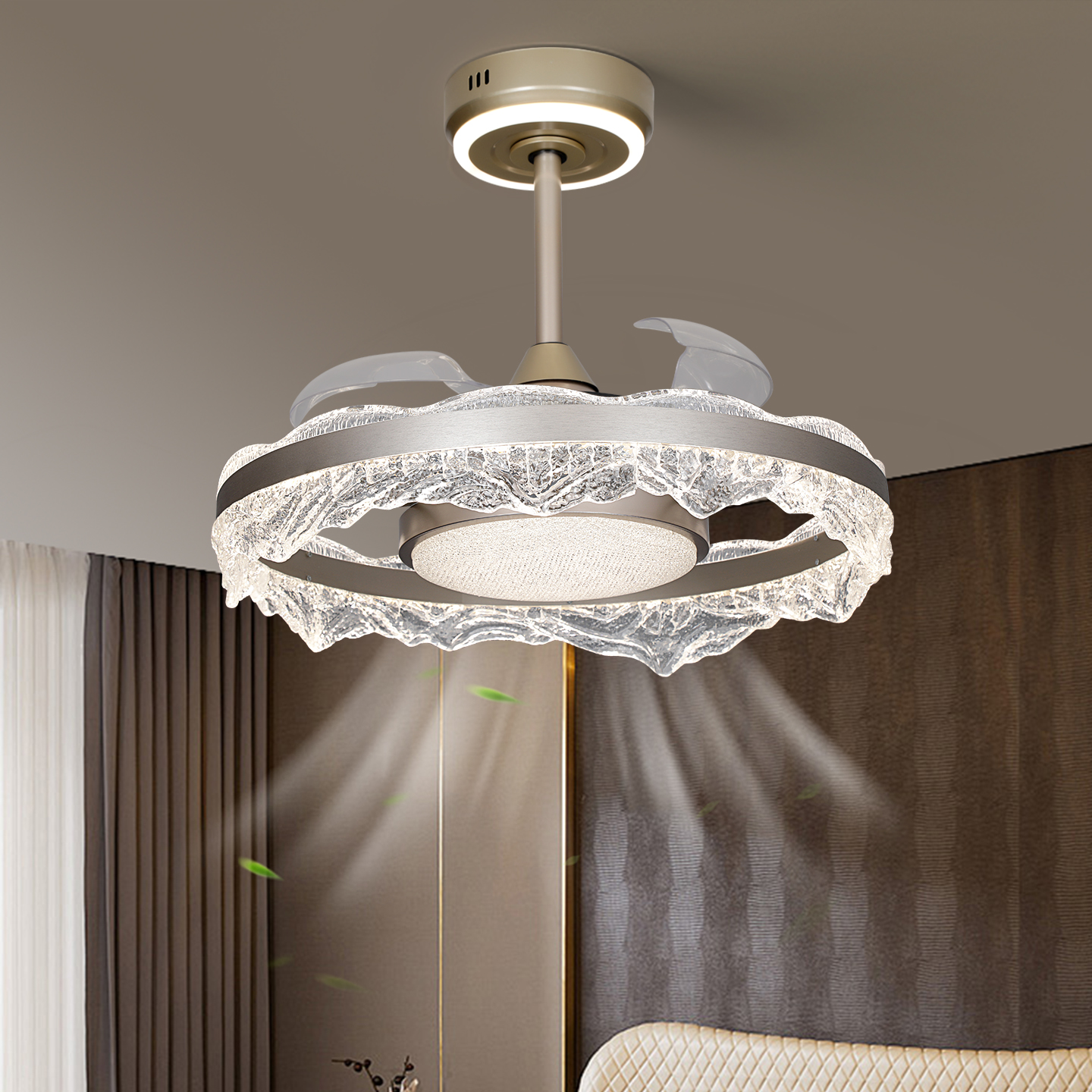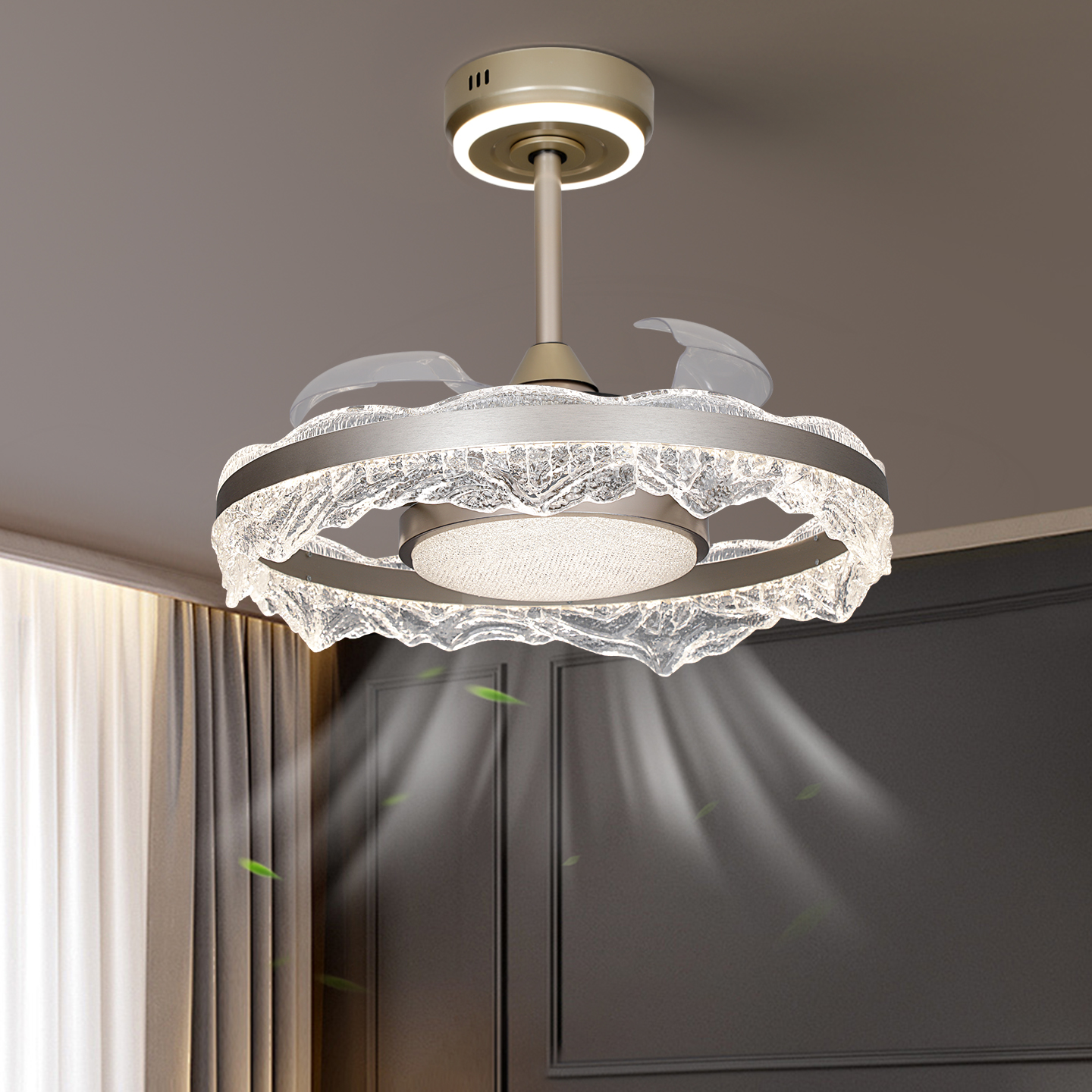 新款中山工厂直销隐形餐厅风扇灯现代简约吊扇灯全铜电机智能语音
