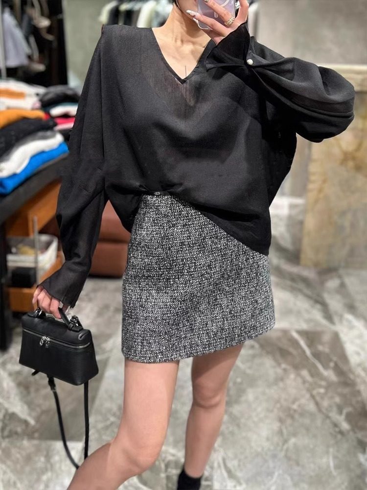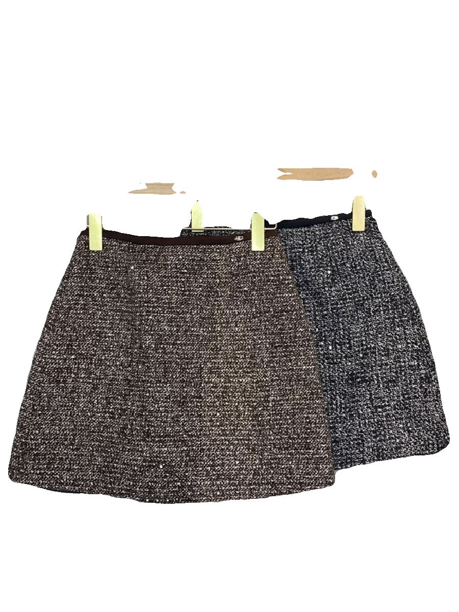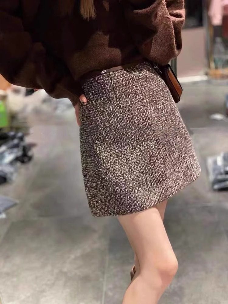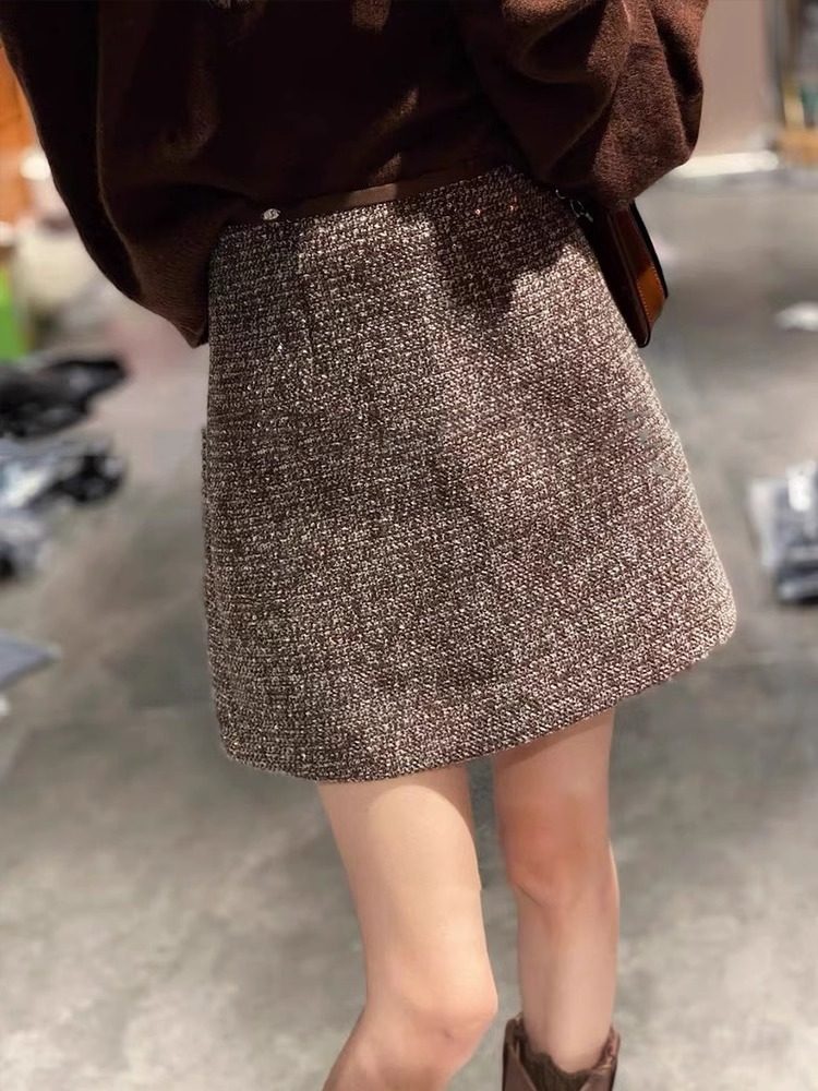 羊毛半身裙女2024秋冬新款高腰小个子亮片粗花呢包臀呢子a字短裙