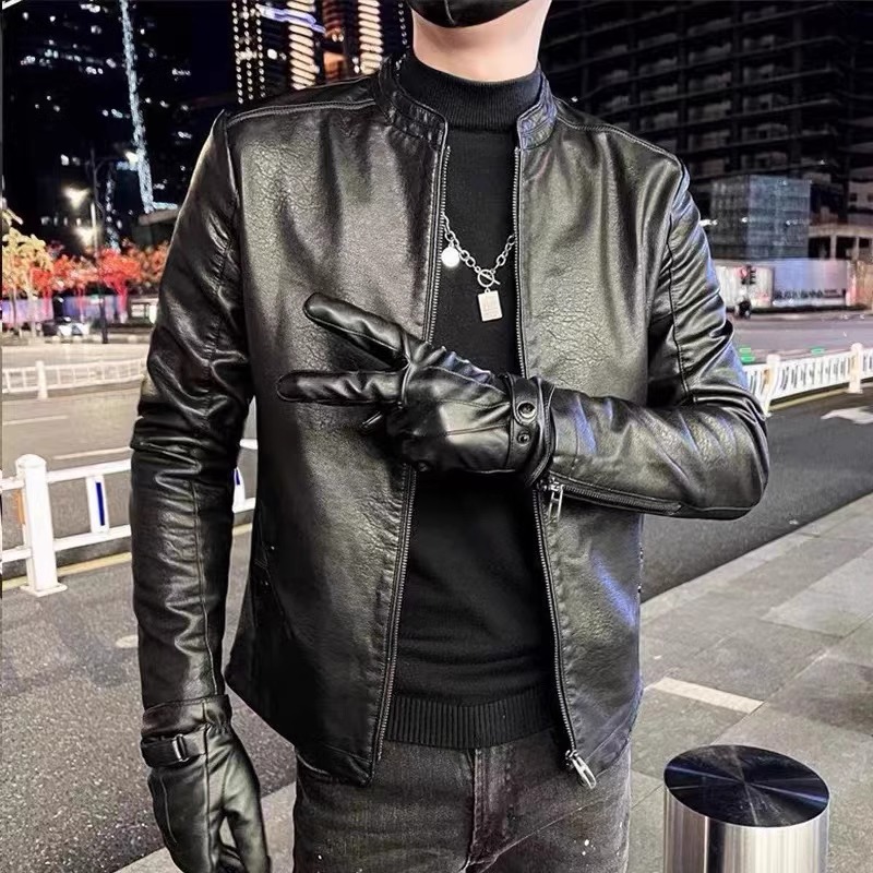 短款夹克痞帅潮流时尚机车pu皮衣社会精神小伙修身炸街百搭外套男