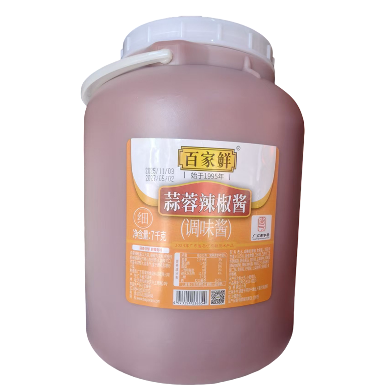 百家鲜细】蒜蓉辣椒酱调料7kg桶装蒜容辣酱烧烤刷牛杂拌面拌菜酱