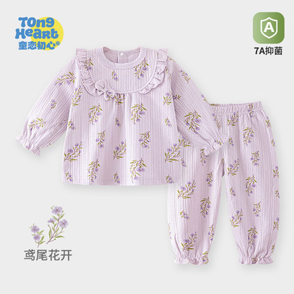 女宝宝套装春秋款纯棉儿童衣服甜美公主花边领春装婴儿外出服洋气
