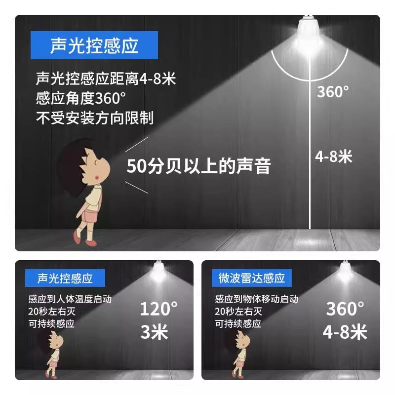 雷达人体感应灯声控声光控led灯智能家用楼道过道走廊E27螺口灯泡