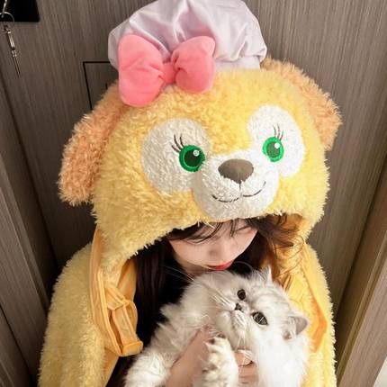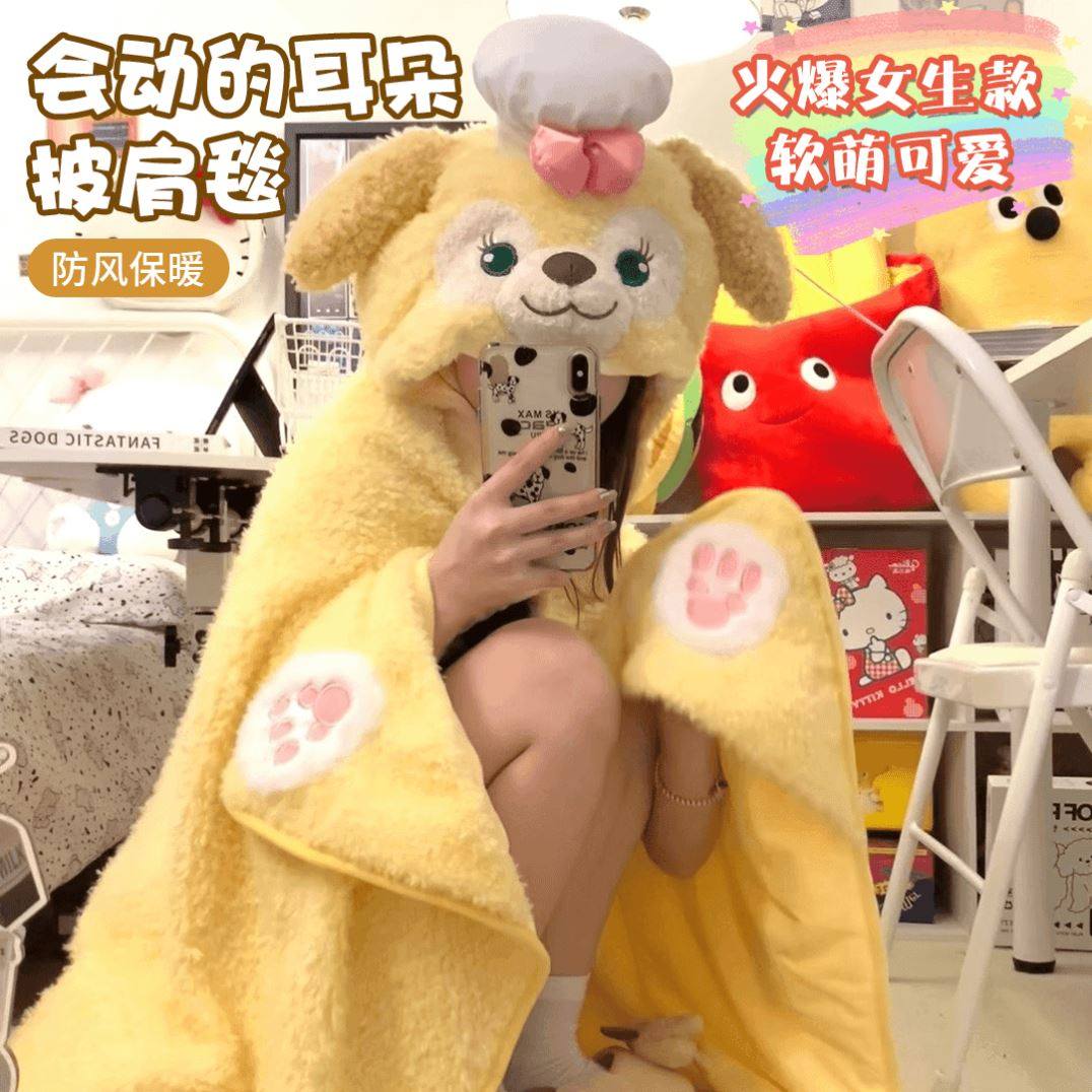 饼饼毛毯迪士尼可琦安厨师狗披肩毯耳朵会动连帽披风卡通斗篷盖毯