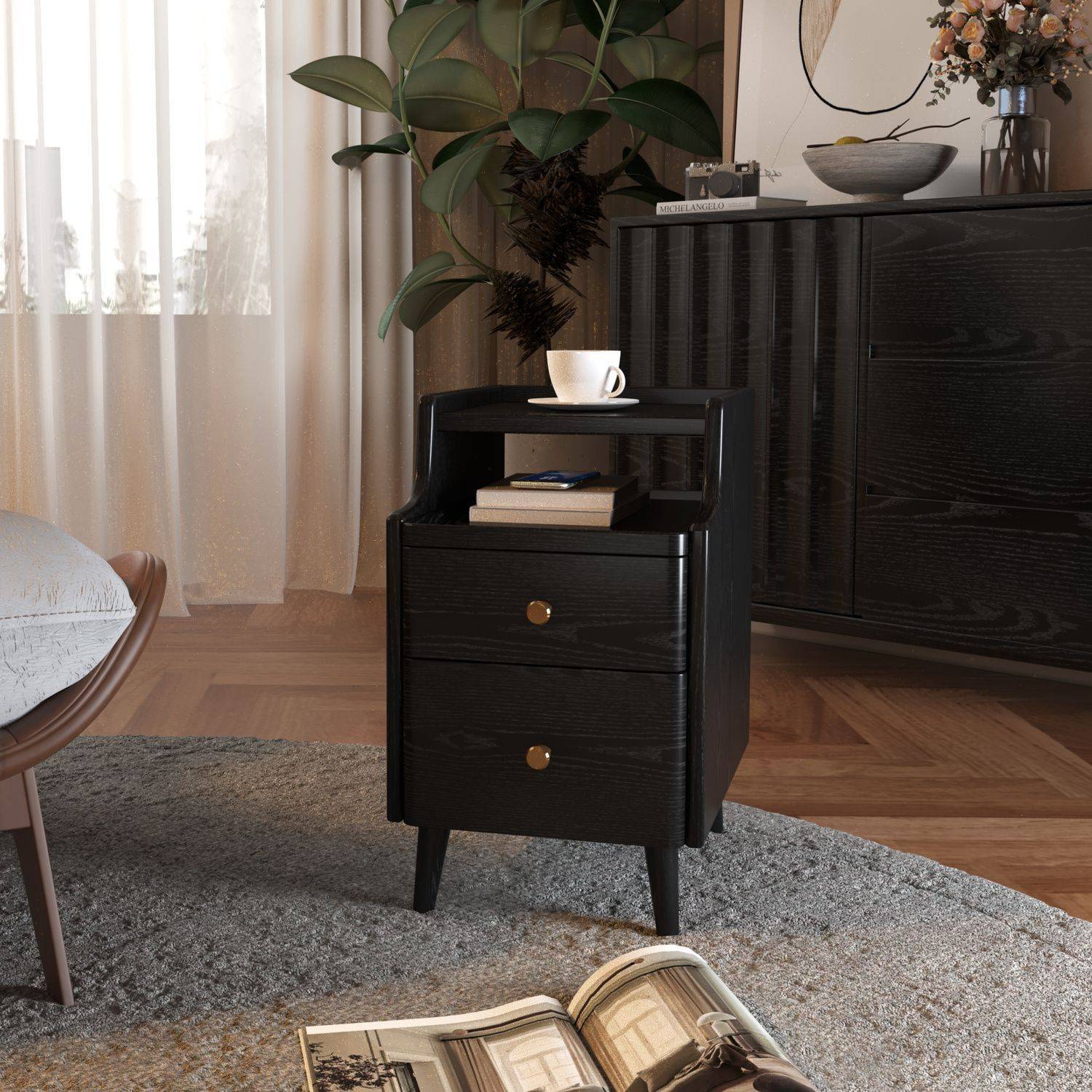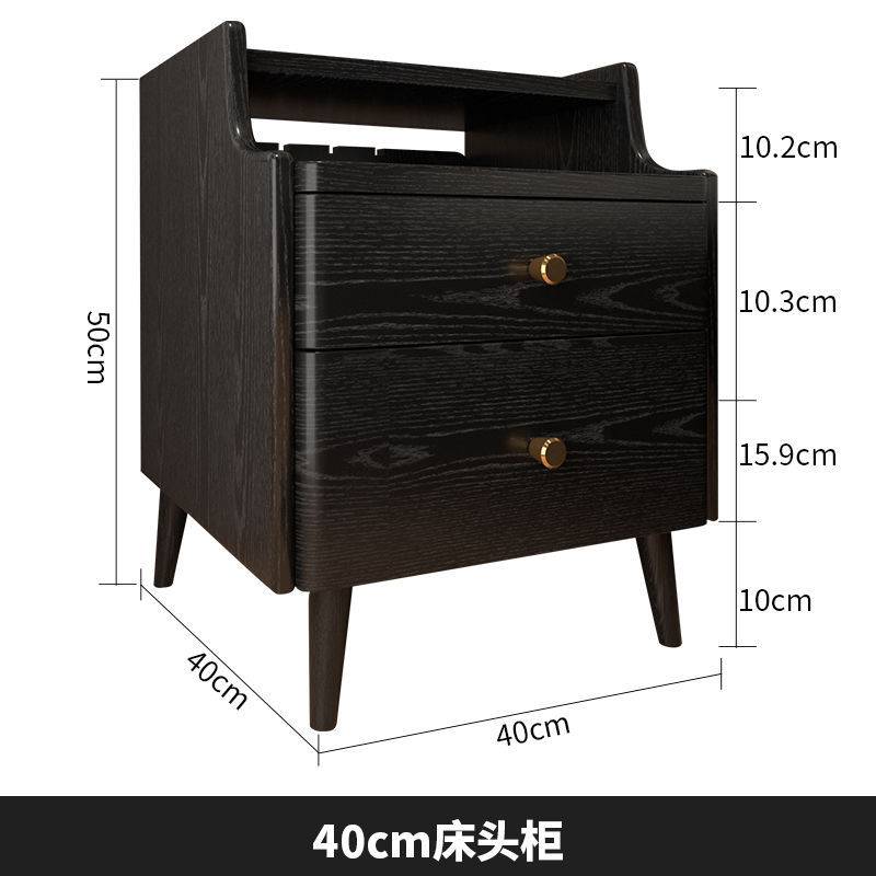 全实木床头柜橡木中古风黑色小茶几简约现代美式法式床头置物柜