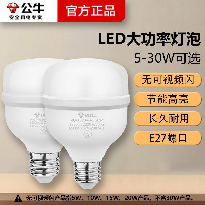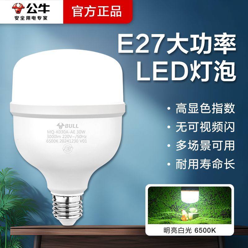 公牛LED灯泡E27螺口大瓦数柱形灯节能超亮车间工厂超市体育场适用