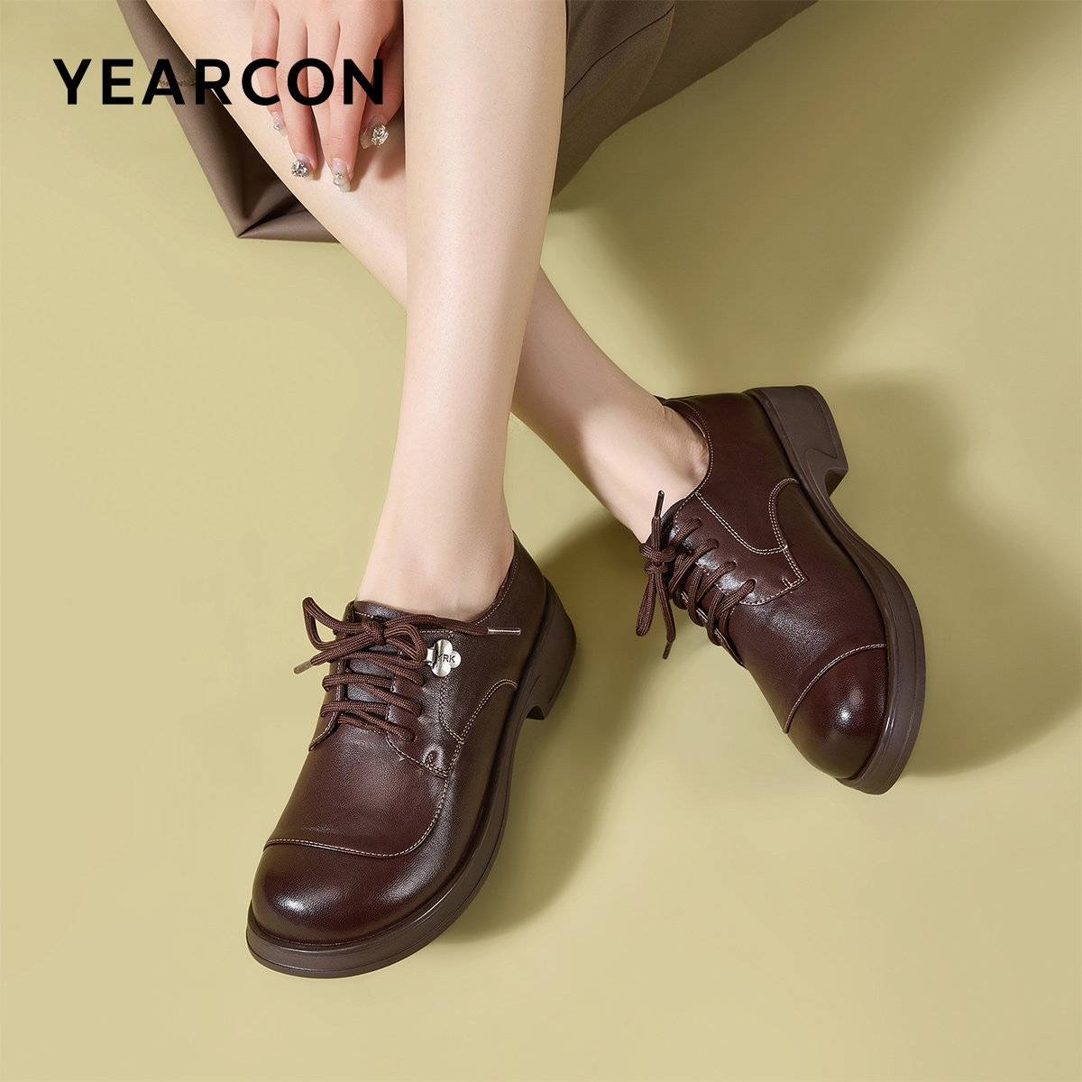 意尔康女鞋2025秋季新款深口乐福女英伦风通勤工作舒适软底小皮鞋