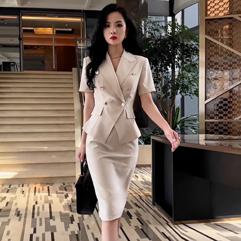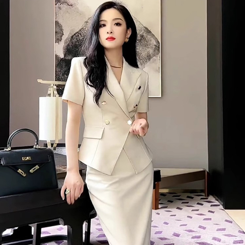 短袖干练气质女装职业装气质女神范高端夏季西装套装裙两件套装