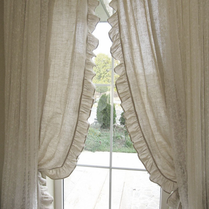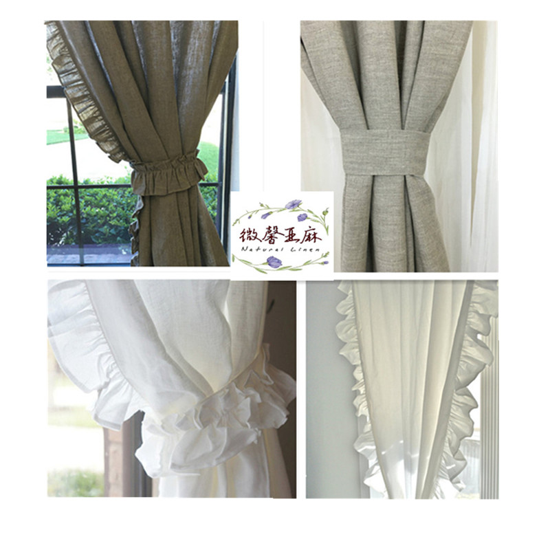 纯亚麻窗帘卧室遮光免打孔安装客厅阳台欧式百褶花边2019新款布帘