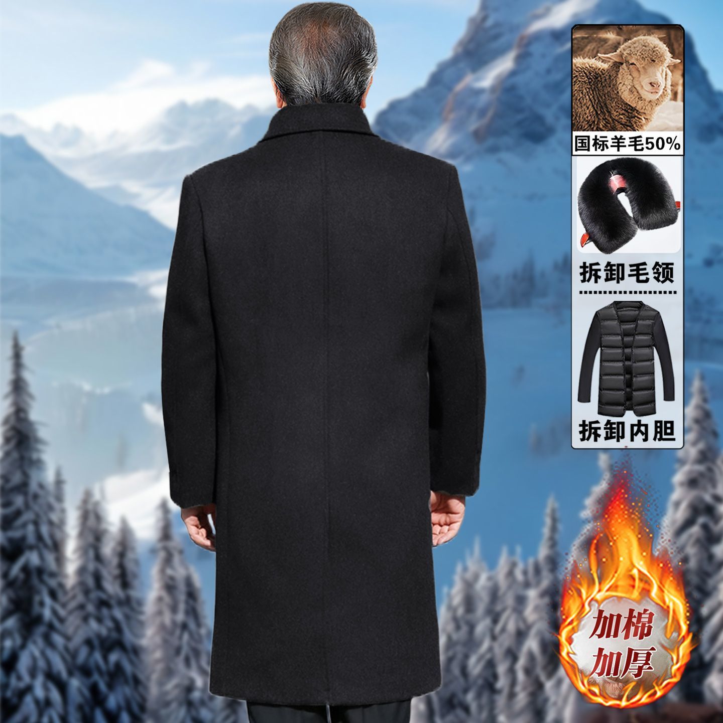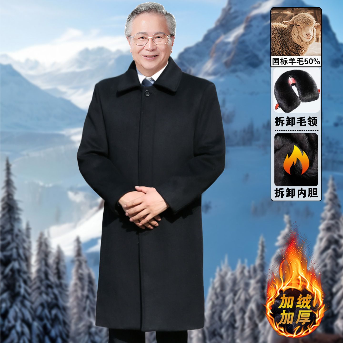 新品上市2025秋冬羊毛呢子外套男长款棉衣爸爸大衣加绒加厚爷爷男
