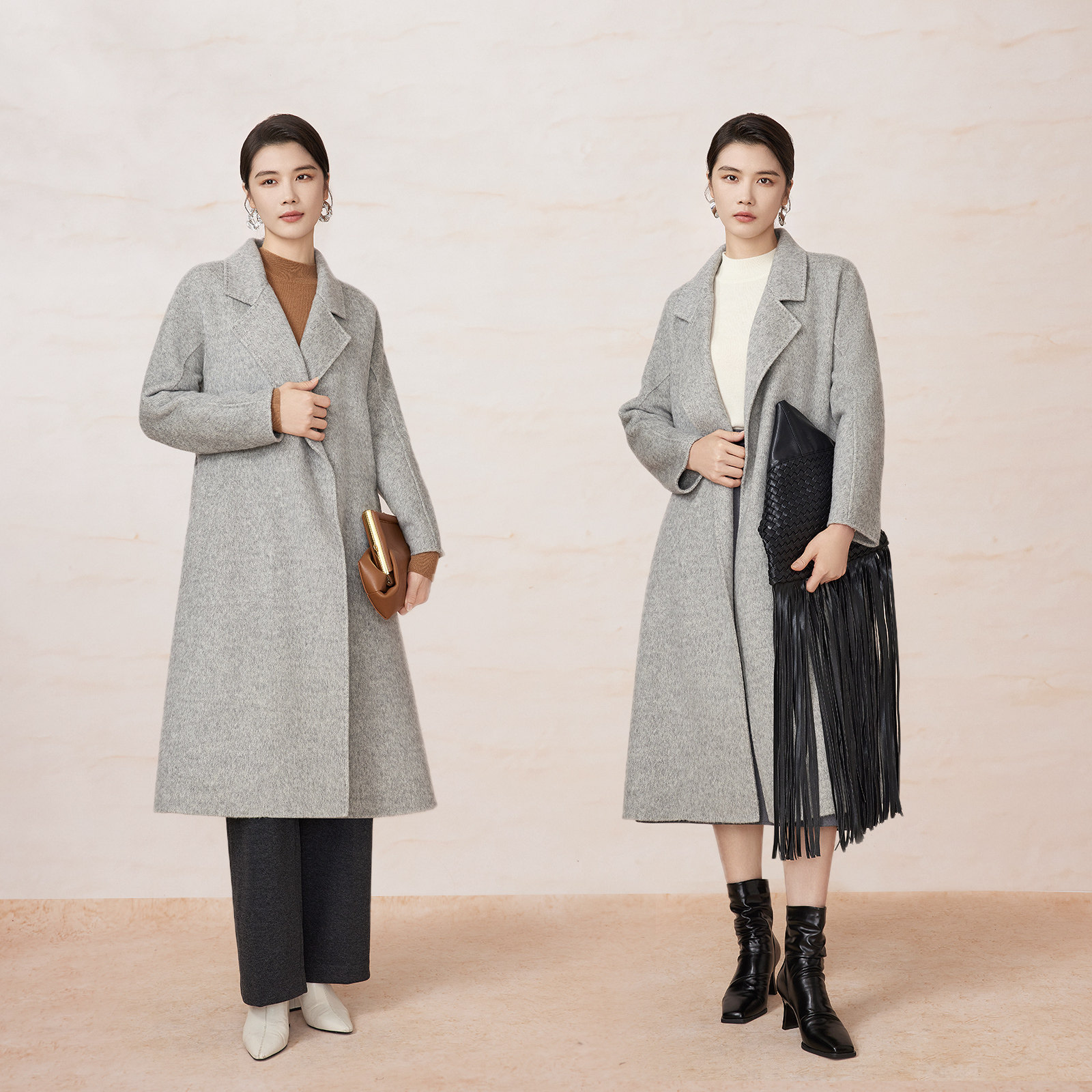 【绵羊毛廓形大衣】BBLLUUEE粉蓝衣橱2025冬装大翻领双面呢外套女