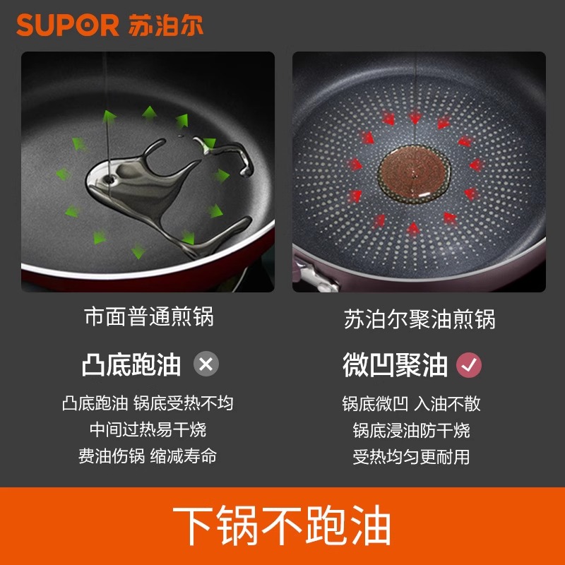 苏泊尔平底锅不粘锅聚油煎锅家用煎饼煎蛋牛排煎锅燃气电磁炉通用