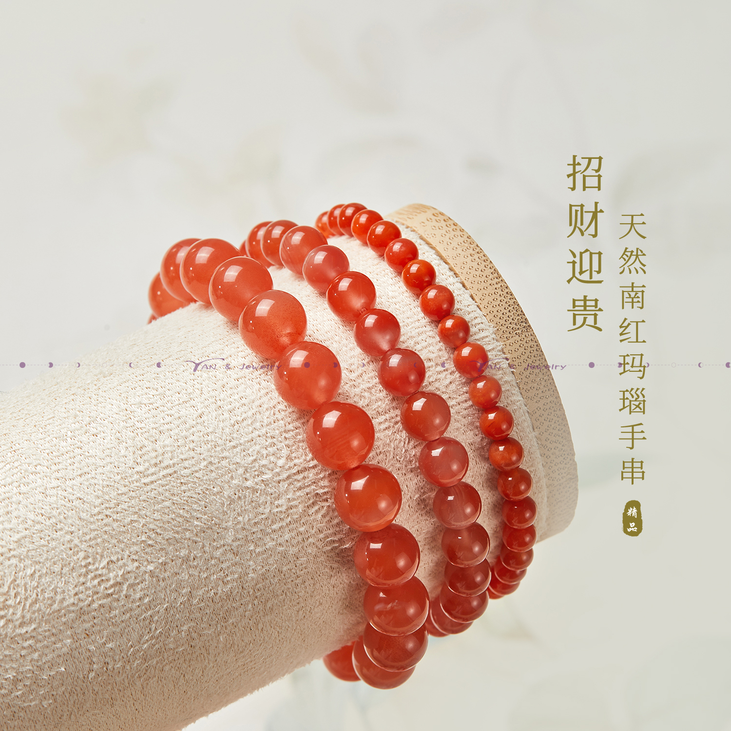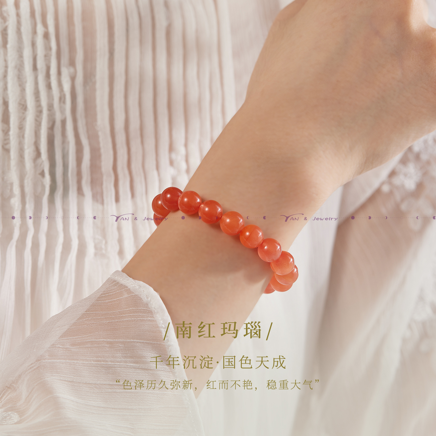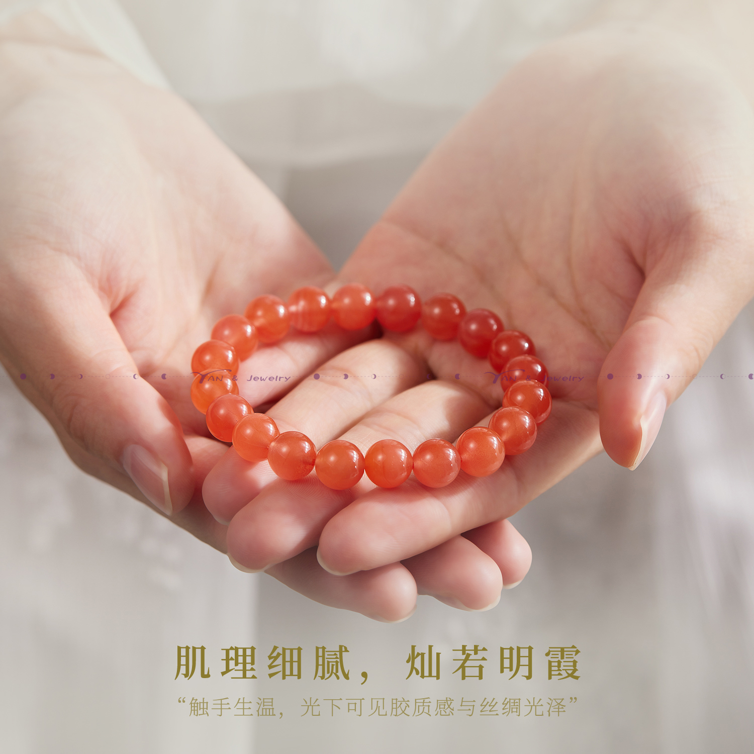 zeroline天然南红玛瑙手串女款轻奢柿子红色满肉手链红绳玉石单珠