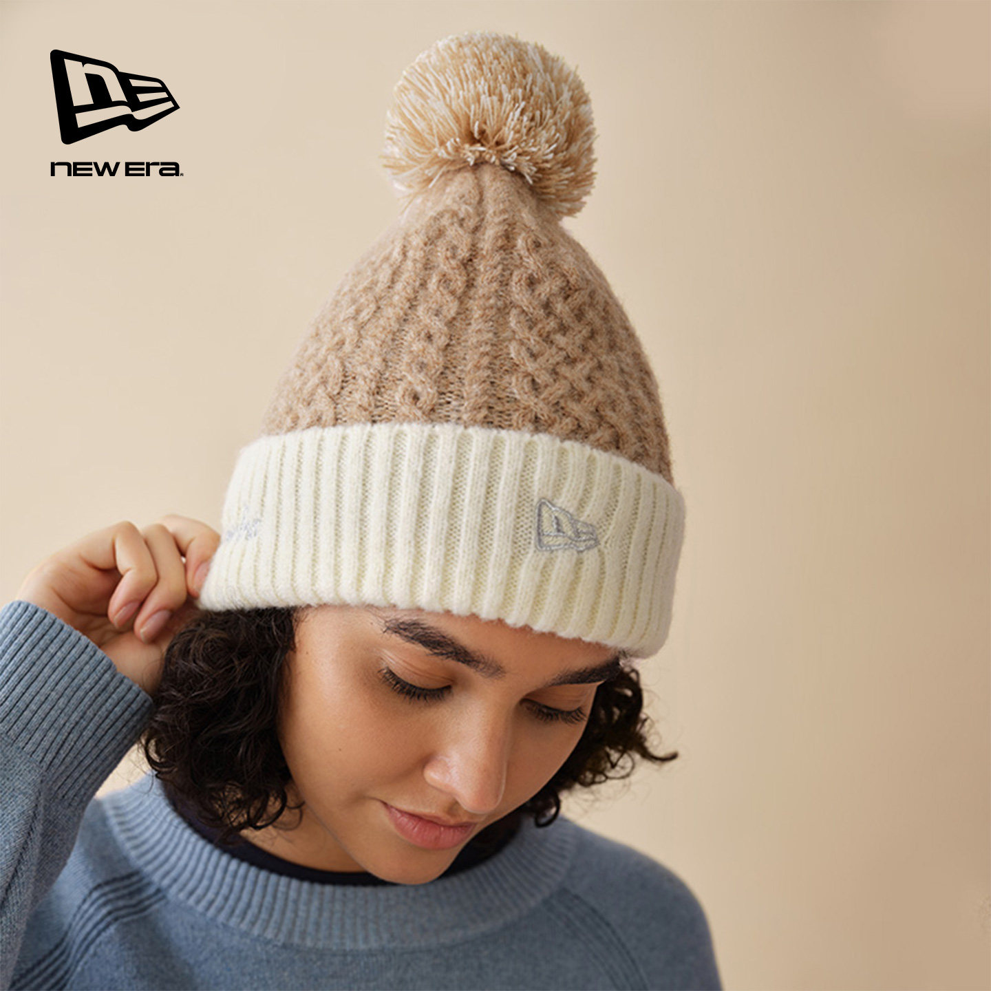 New Era纽亦华2025冬季新款闪闪圣诞针织毛线帽保暖绒球情侣百搭