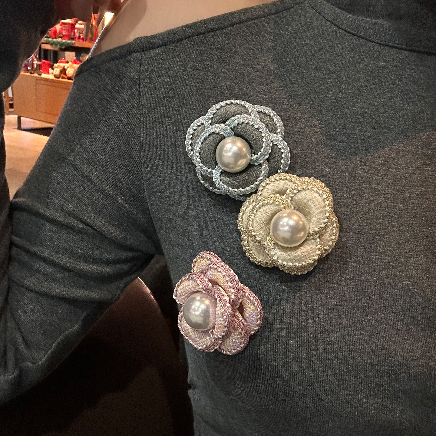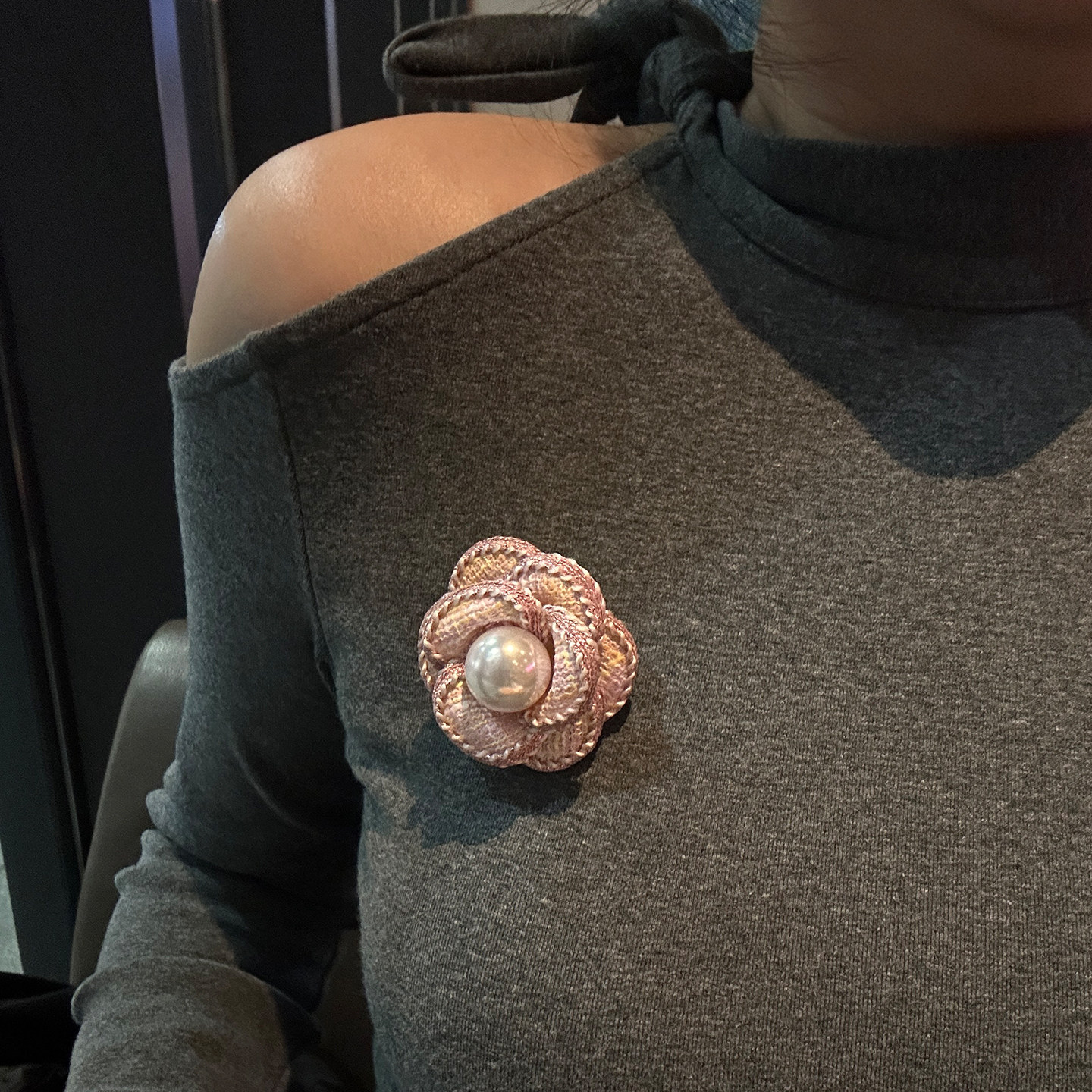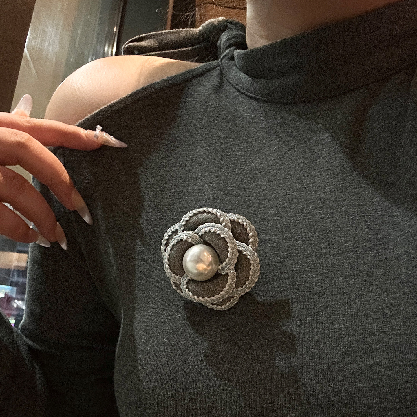 法式小香风山茶花珍珠胸针女精致胸花轻奢高级感花朵别针秋冬装饰
