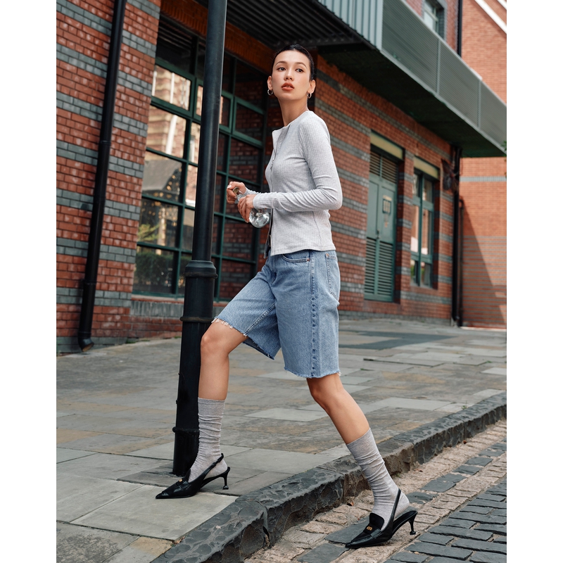 AF女装25夏季美式复古baggy风宽松五分裤牛仔短裤149-5122