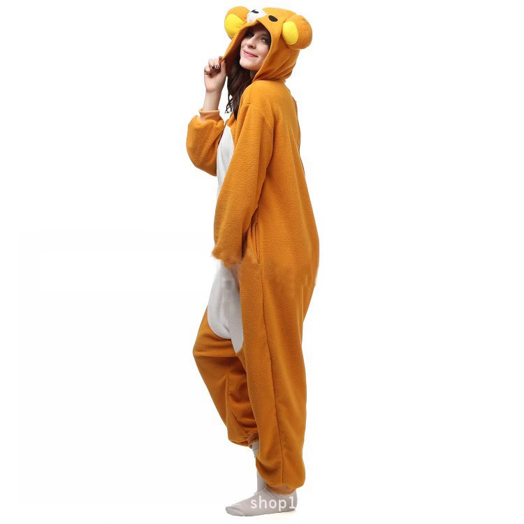 日系轻松熊连体睡衣卡通动漫成人男女情侣懒人服秋冬季加厚绒表演