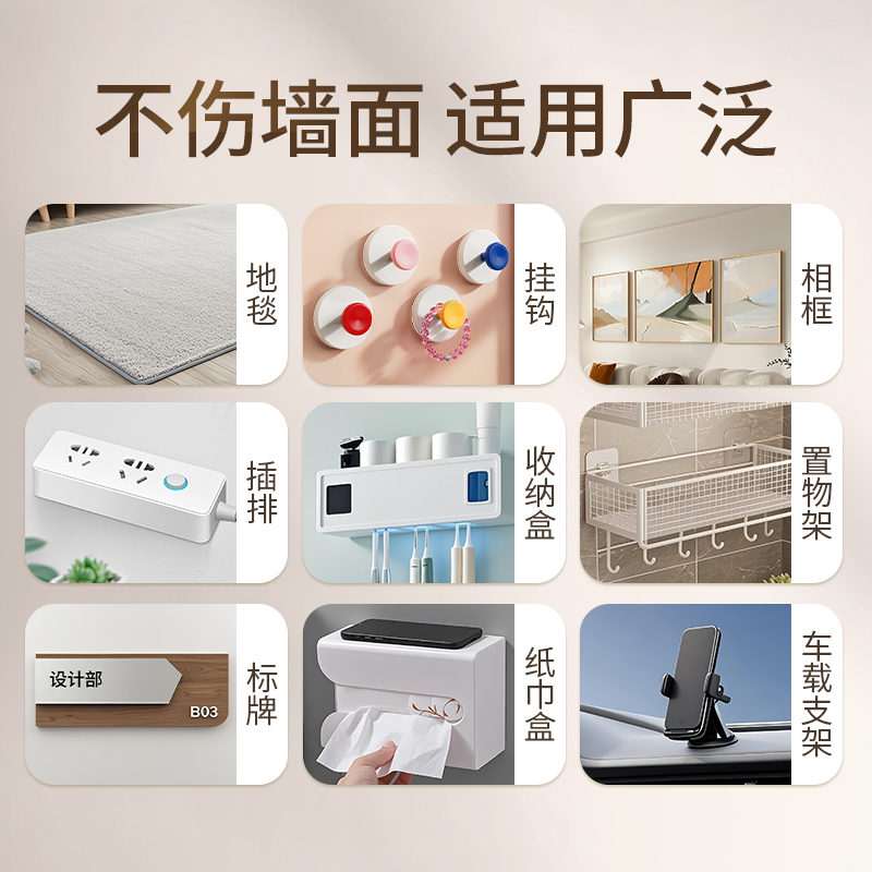 网格纳米双面胶强力超粘无痕贴不伤墙透明布基胶带拖线板排插固定器乳胶漆墙面挂画照片不留痕置物架挂钩粘胶