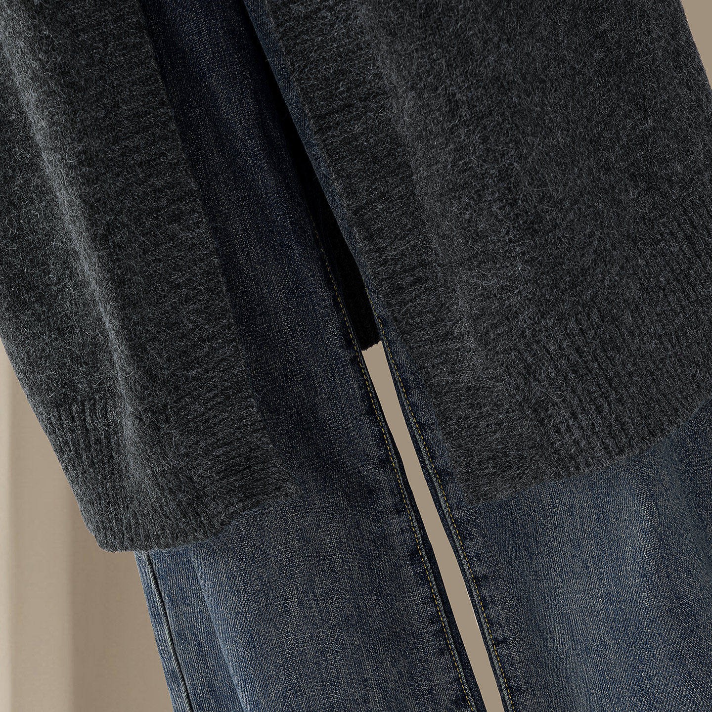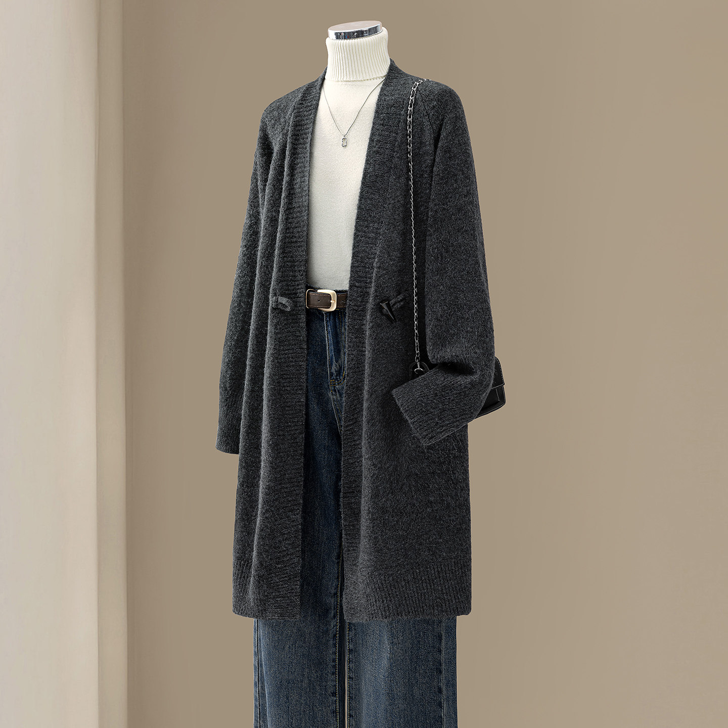 她池简约中长款宽松款针织外套