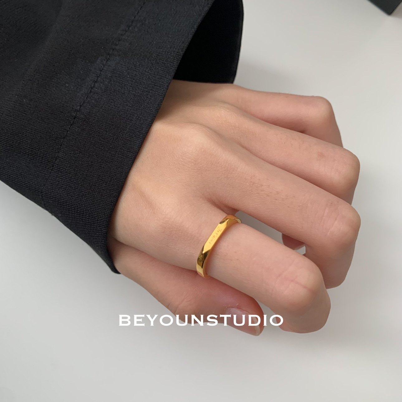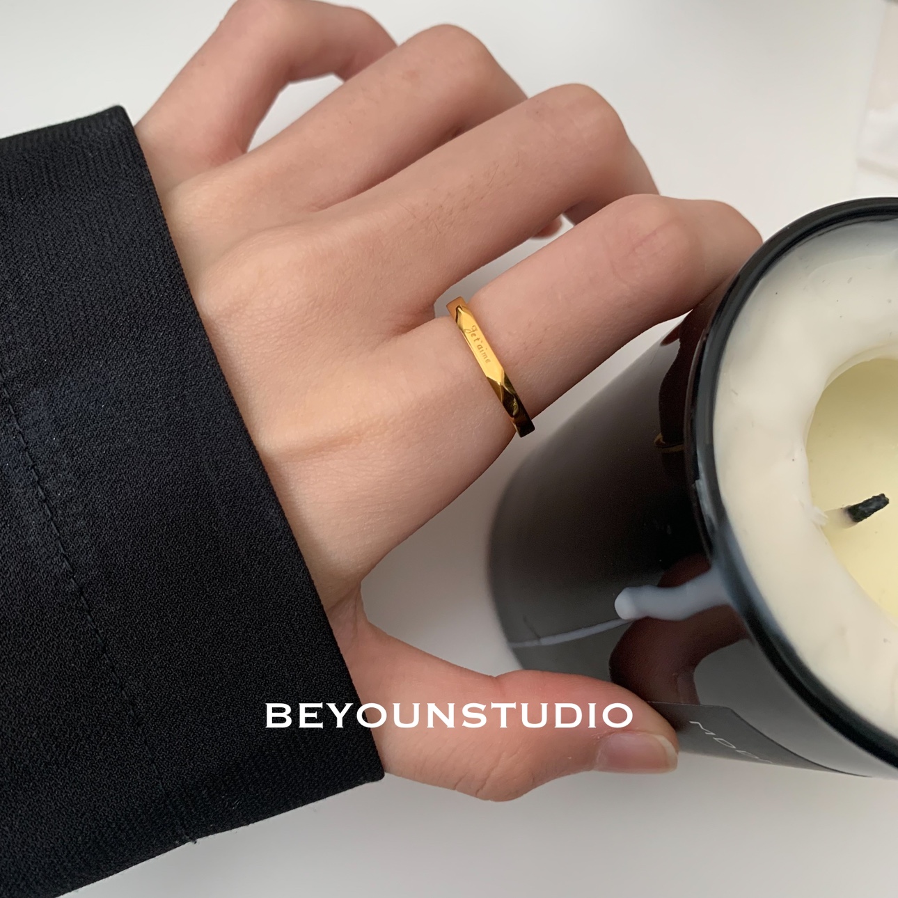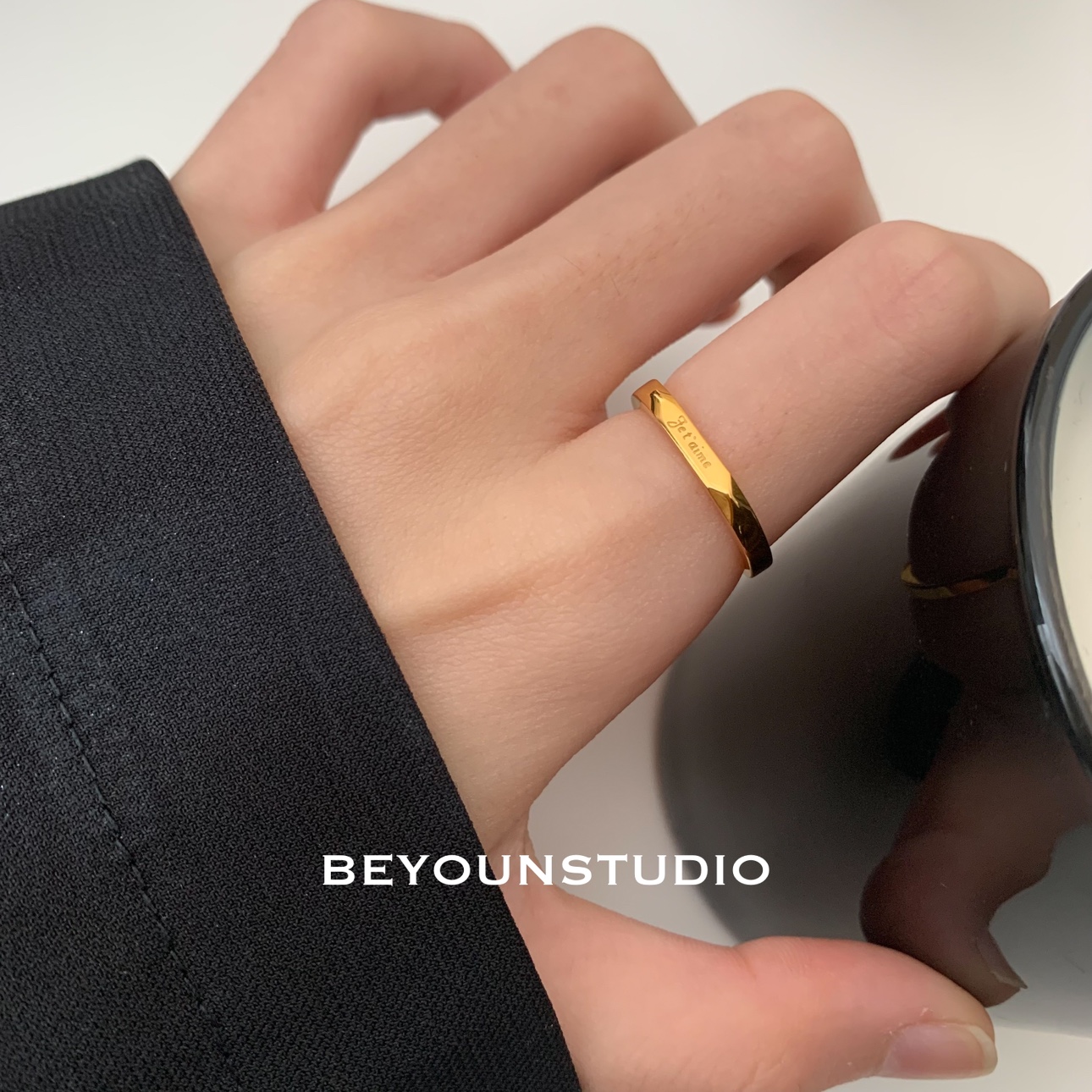 ZUORAN 法语我爱你金色钛钢小众轻奢精致高级ins潮流女关节戒RF01