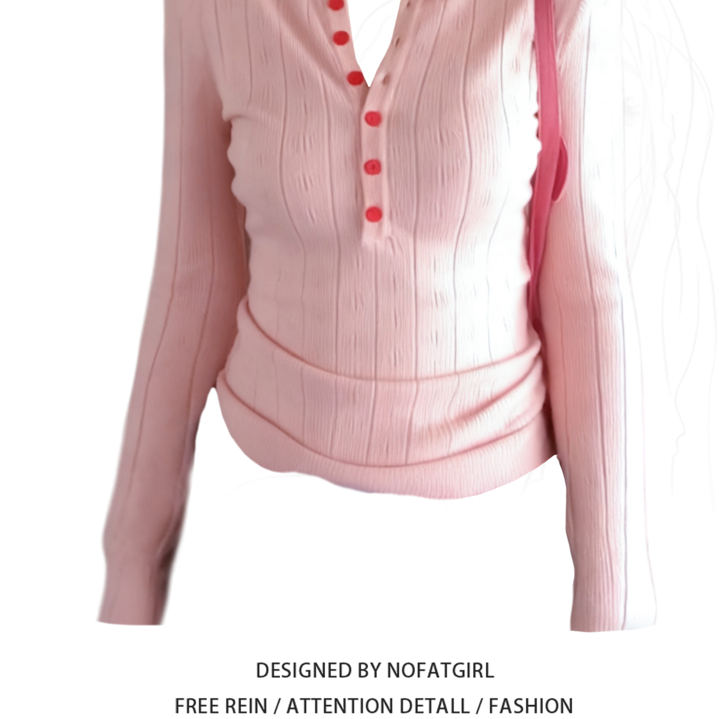 韩系甜美粉色V领长袖针织衫女秋冬修身内搭打底衫巨好看辣妹上衣
