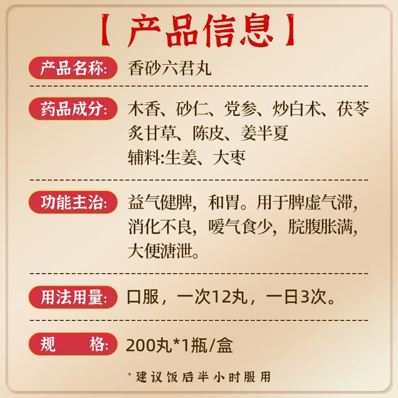 香砂六君丸正品六君子丸汤仲景益气健脾脾胃虚弱湿气重祛湿肝火盛