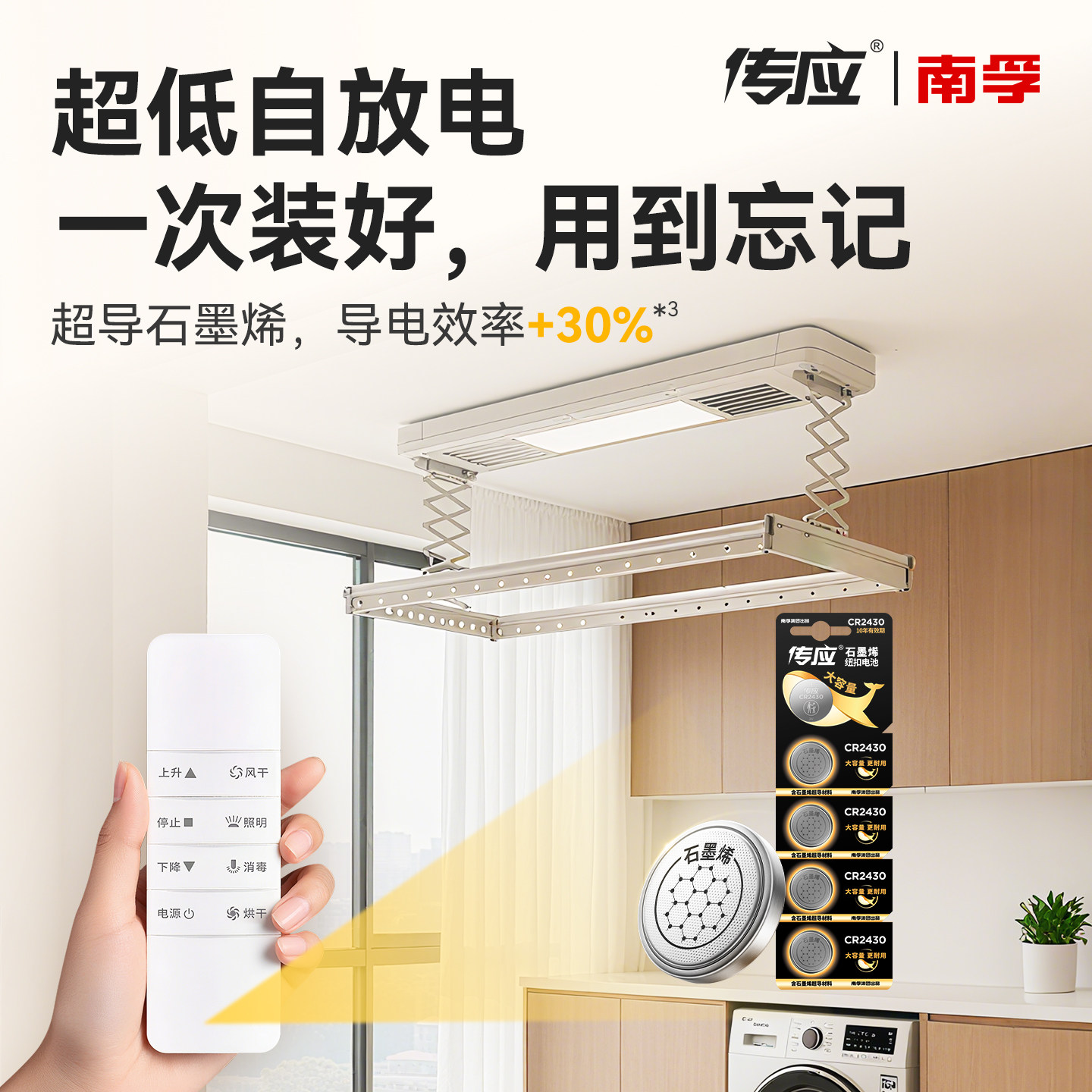 适用于好太太电动晾衣架遥控器纽扣电池cr2430/cr2450自动智能升降晾衣机南孚传应电子3v阳台专用大容量圆形
