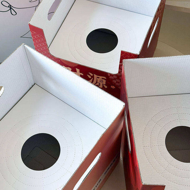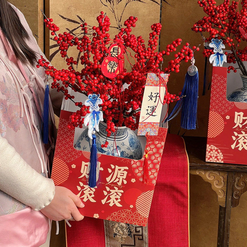 恭喜发财新年喜庆双把手花篮盒鲜花福桶盆栽手提盒礼盒花店包装盒