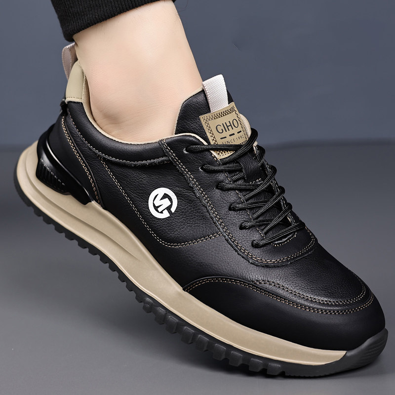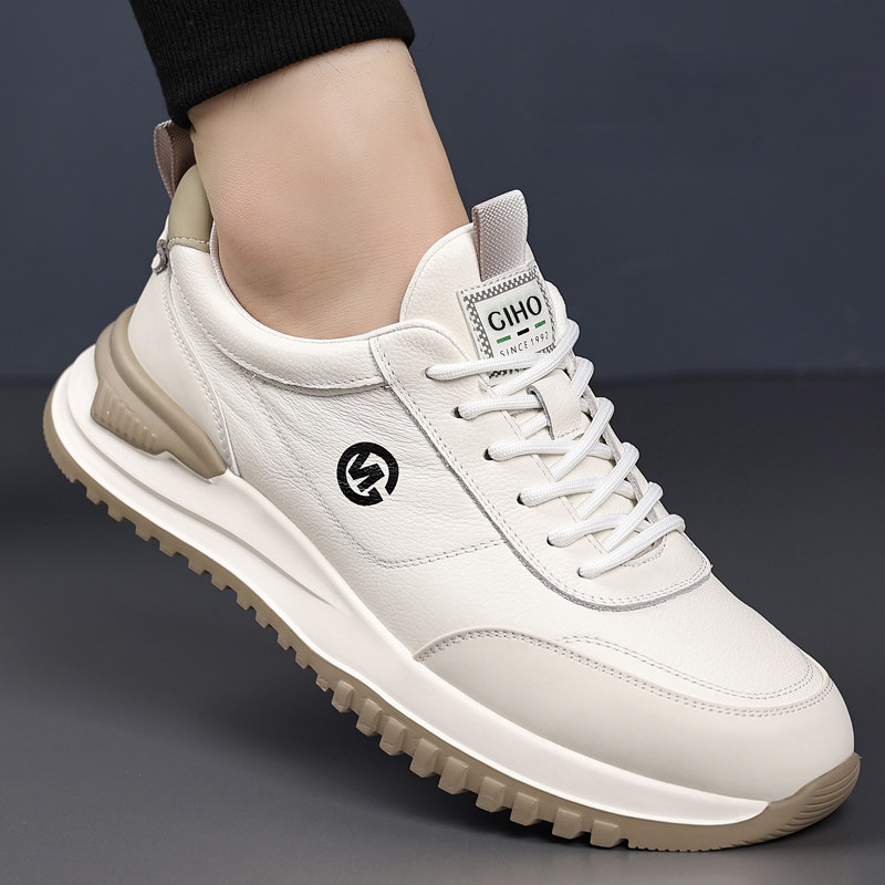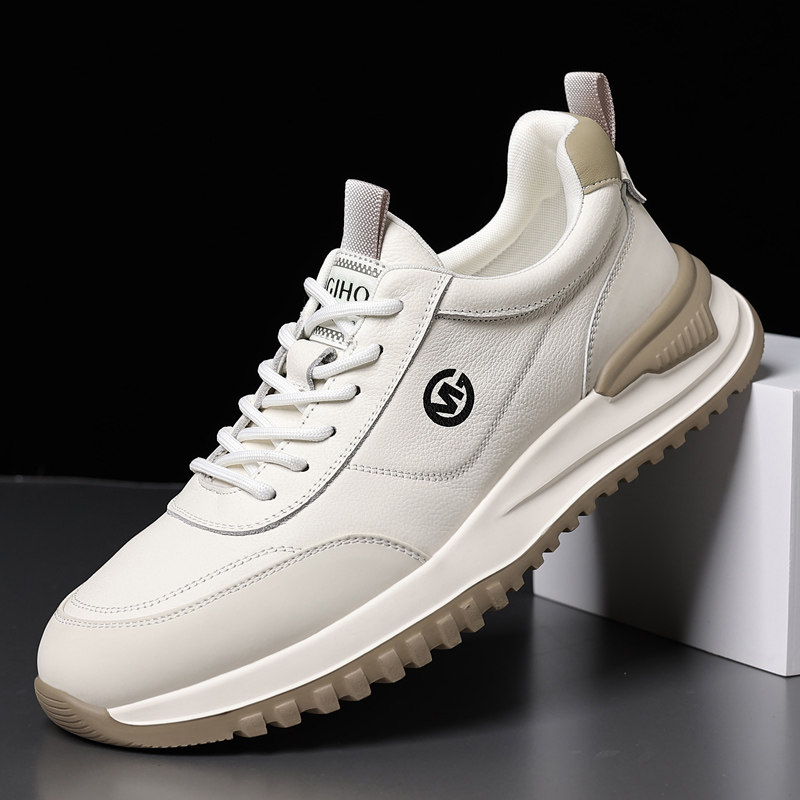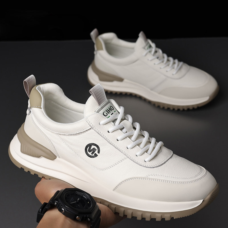 男鞋真皮2025新款夏季休闲头层牛皮小白鞋跑步运动旅游轻便男皮鞋