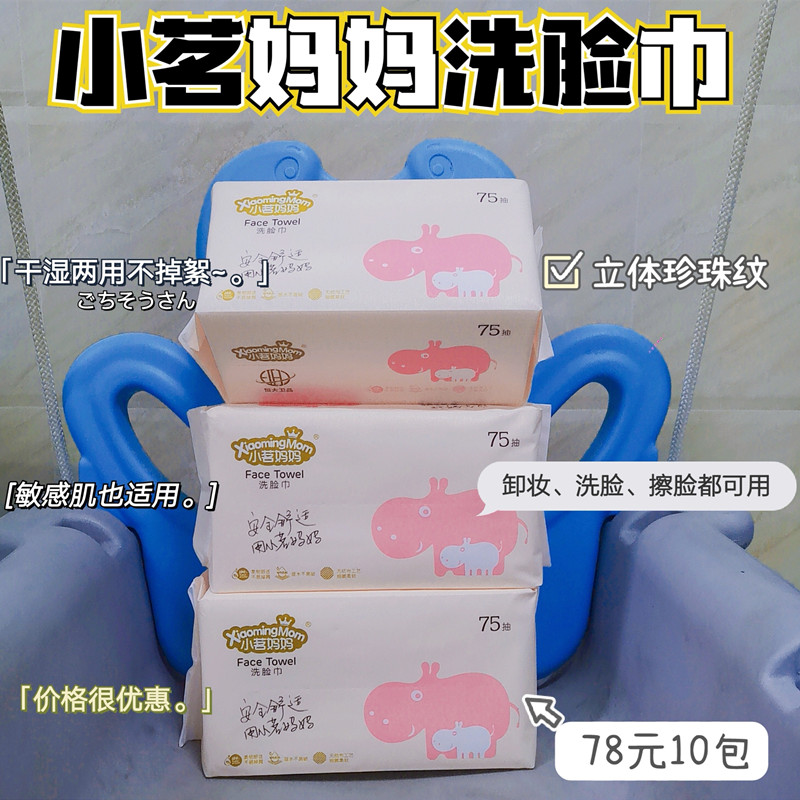 小茗妈妈洗脸巾婴儿棉柔一次性纯棉加厚洁面巾干湿两用75抽10袋装