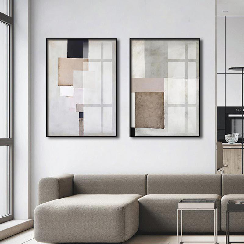 现代简约客厅抽象装饰画北欧裸色块油画大气沙发背景墙三联画壁画