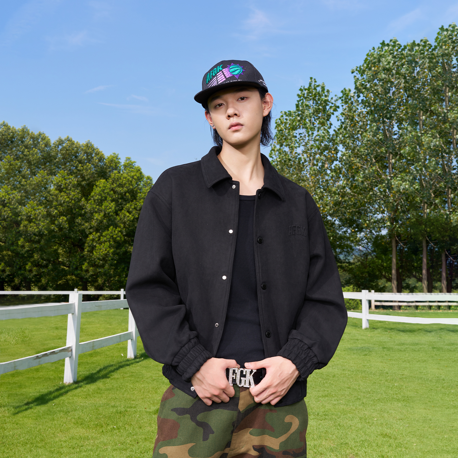 AFGK24FW 350G空气层钢印麂皮绒夹克外套男女棒球服国潮春秋上衣