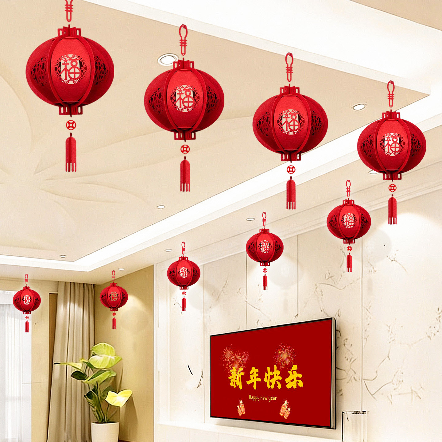 2026马年春节福字灯笼客厅吊顶