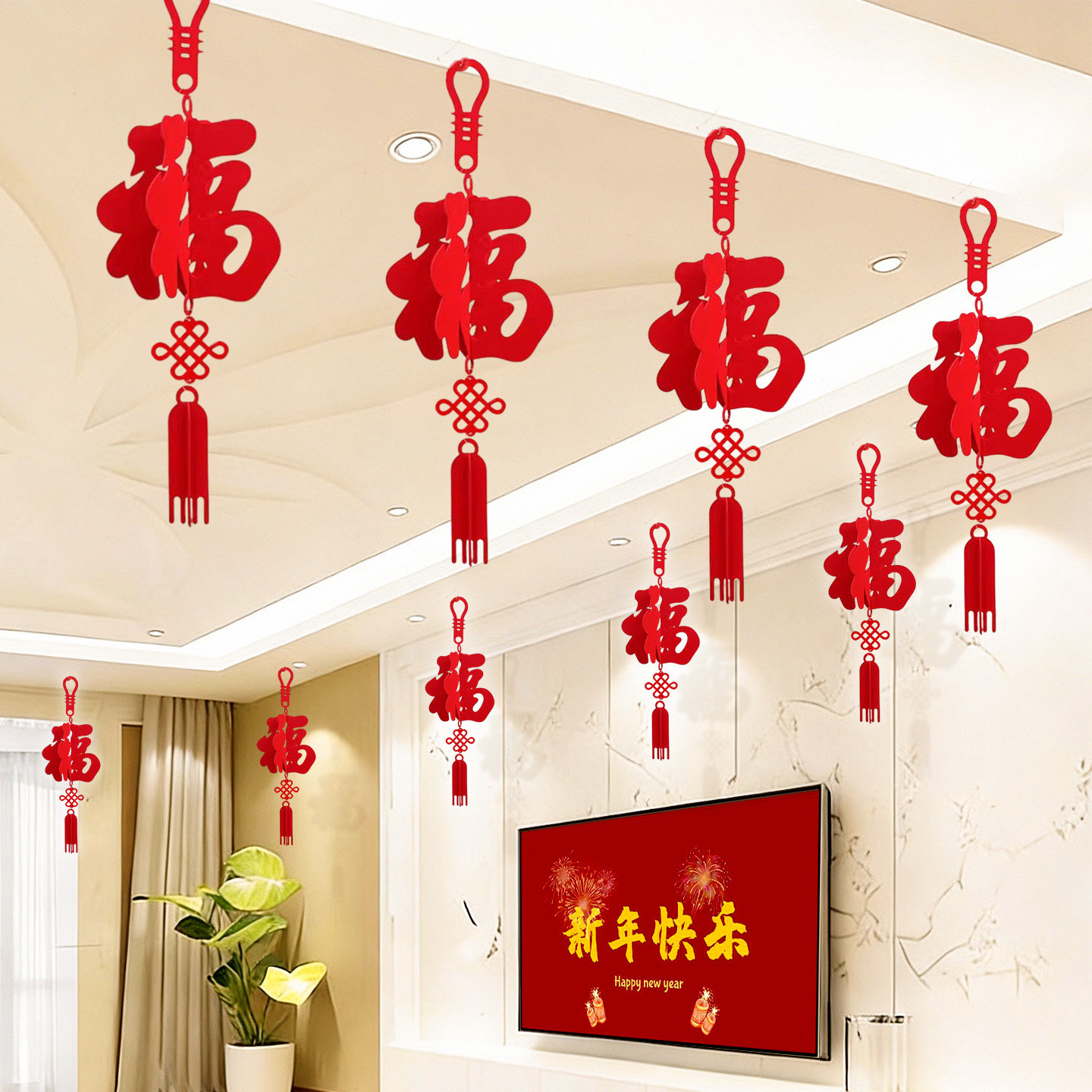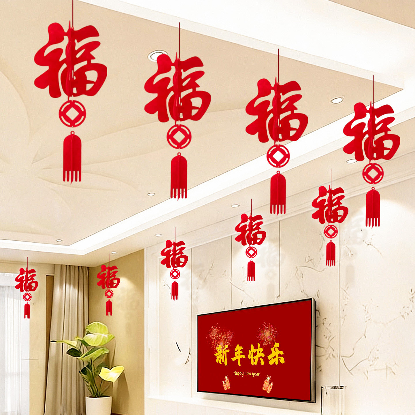 乔迁之喜福字挂饰过年春节2026马年装饰客厅吊顶天花板挂件灯笼福