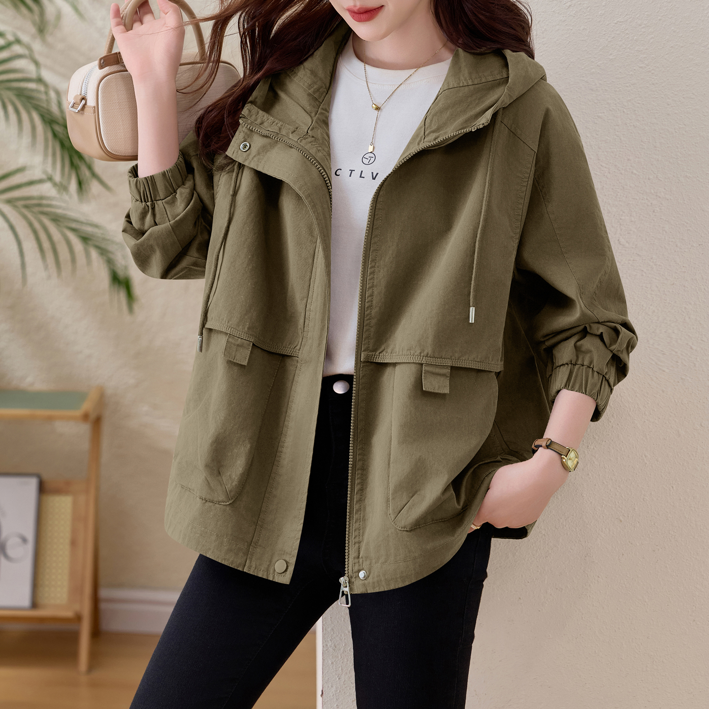 时尚休闲连帽小外套女2025春秋新款宽松显瘦妈妈短款风衣夹克上衣