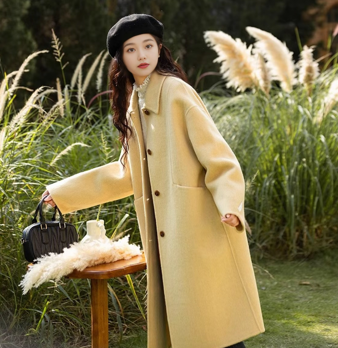 特价高奢羊驼毛桑蚕丝秋冬羊绒宽松显瘦中长款大衣双面羊毛呢外套