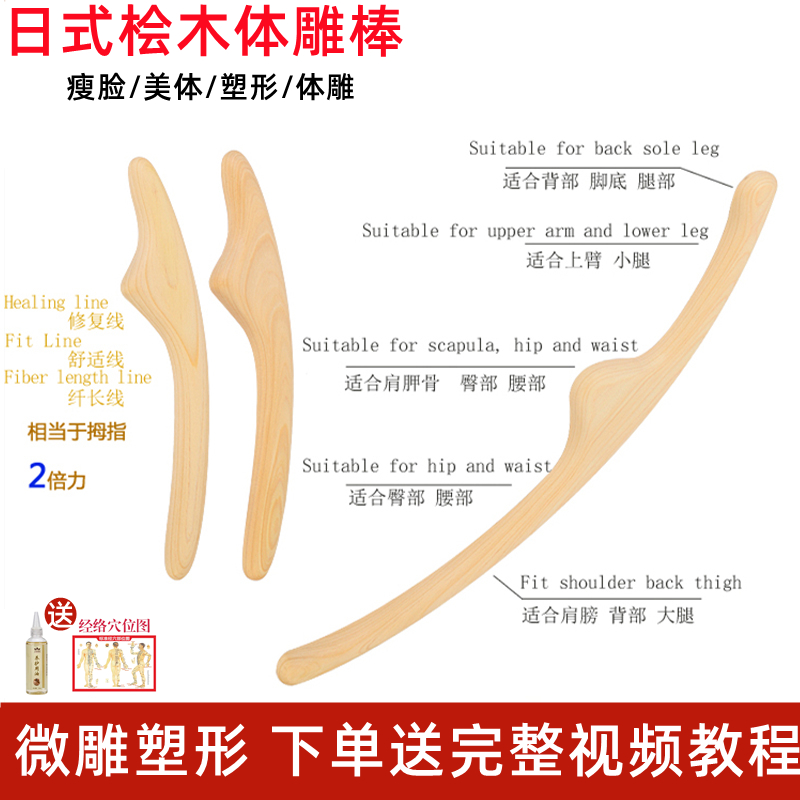 日式桧木体雕面雕棒瘦脸部美体塑形经络棒刮痧点穴按摩擀筋美容院