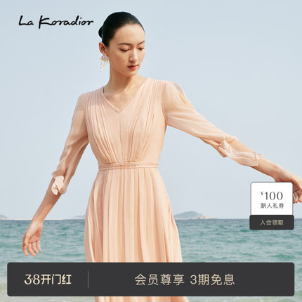 【重磅真丝】La Koradior拉珂蒂时尚夏连衣裙收腰真丝百褶裙女