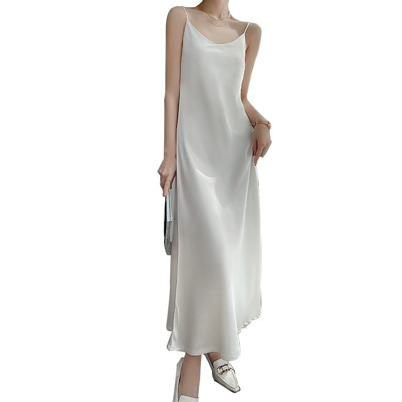 桑蚕丝吊带连衣裙女夏季内搭打底纯色新款缎面真丝高级感长裙法式