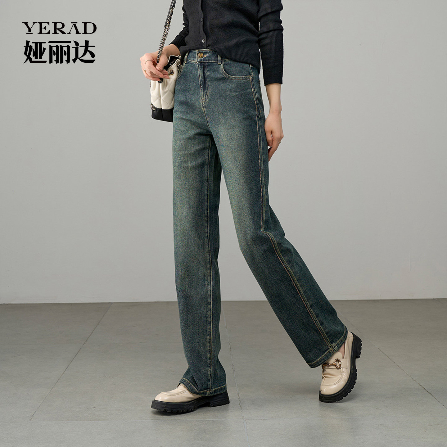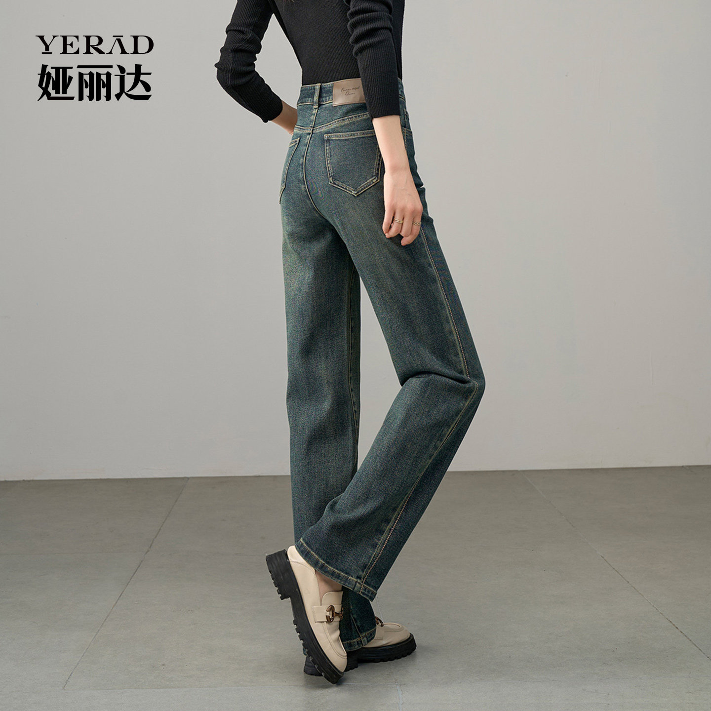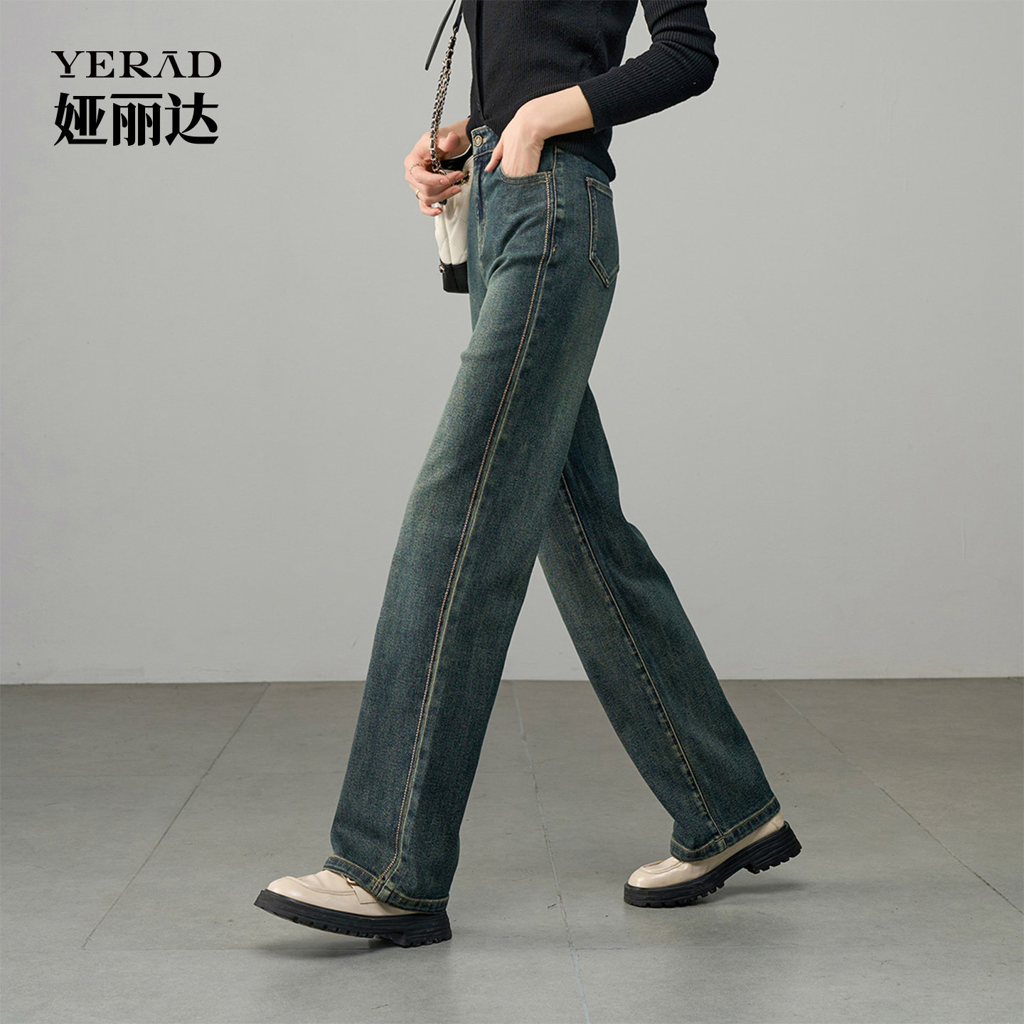 娅丽达女裤2025秋季新款复古窄版阔腿牛仔裤女直筒显瘦拖地长裤