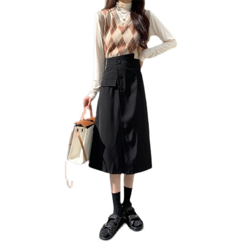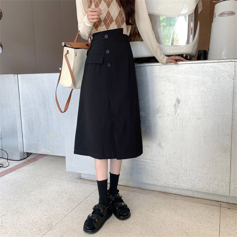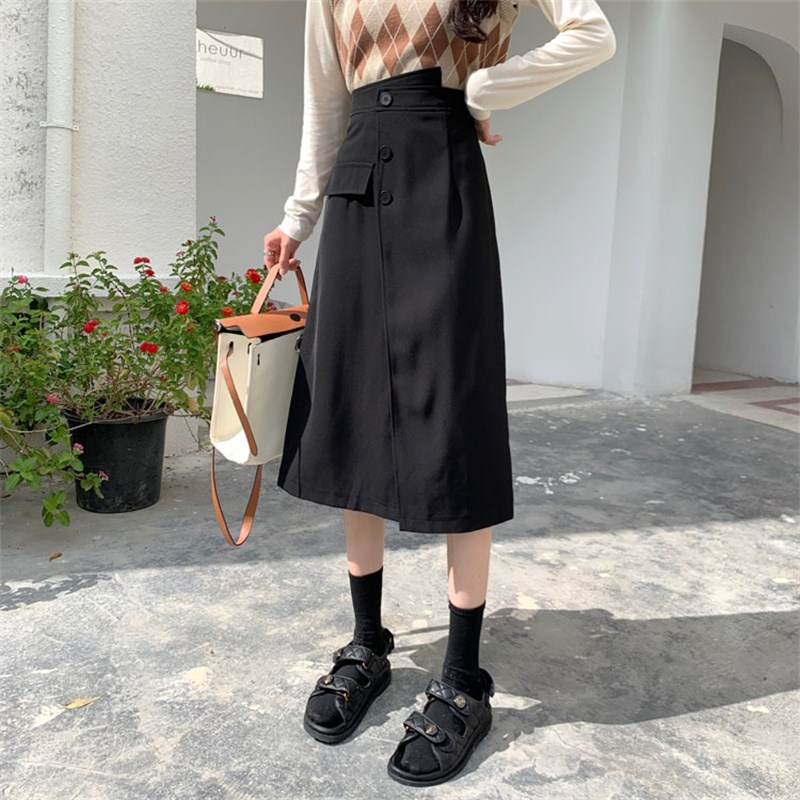 现货速发新款高腰不规则a字半身裙春秋大码气质开叉中长款包臀裙