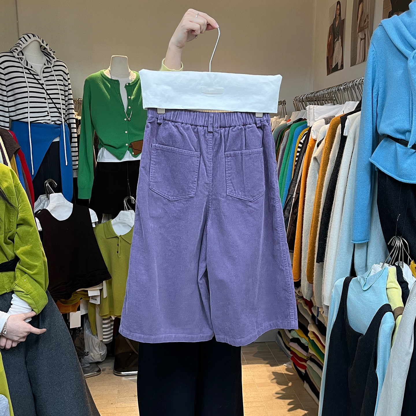 LARTI十三行女装2025新款韩系淡人高知穿搭五分裤灯芯绒阔腿裤女