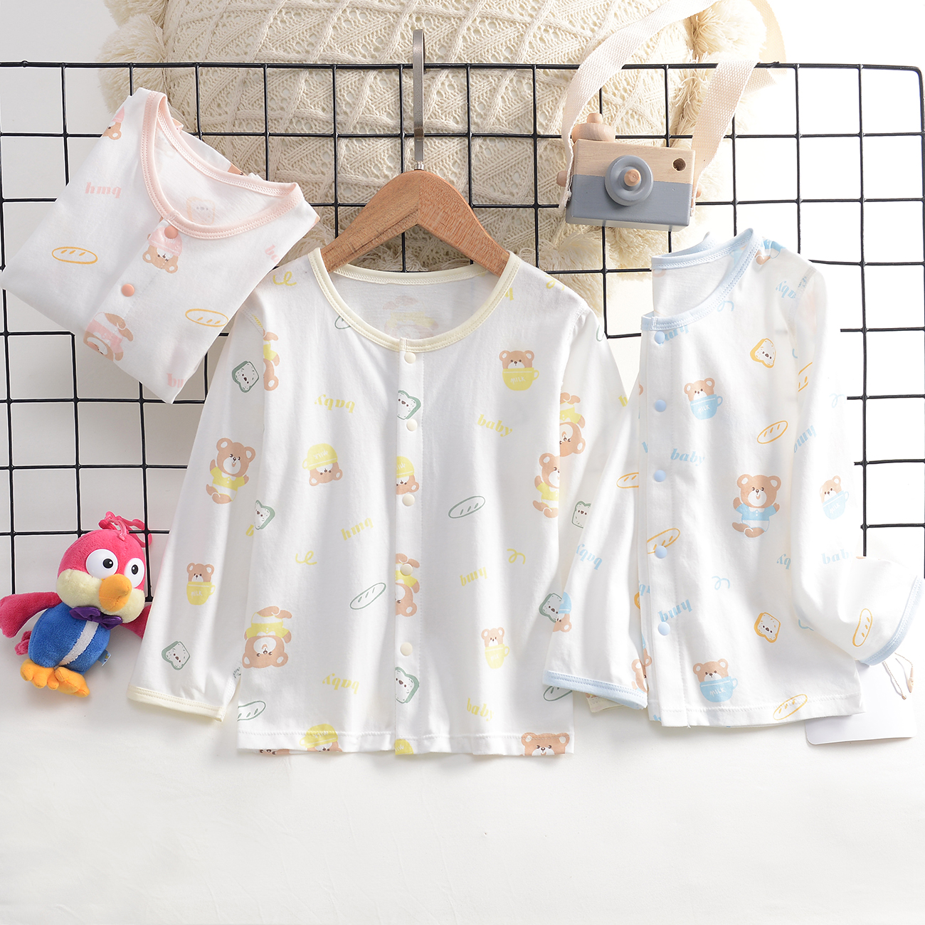 哈咪奇夏季薄款宝宝纯棉长袖开衫上衣婴儿童家居空调房服睡衣内衣