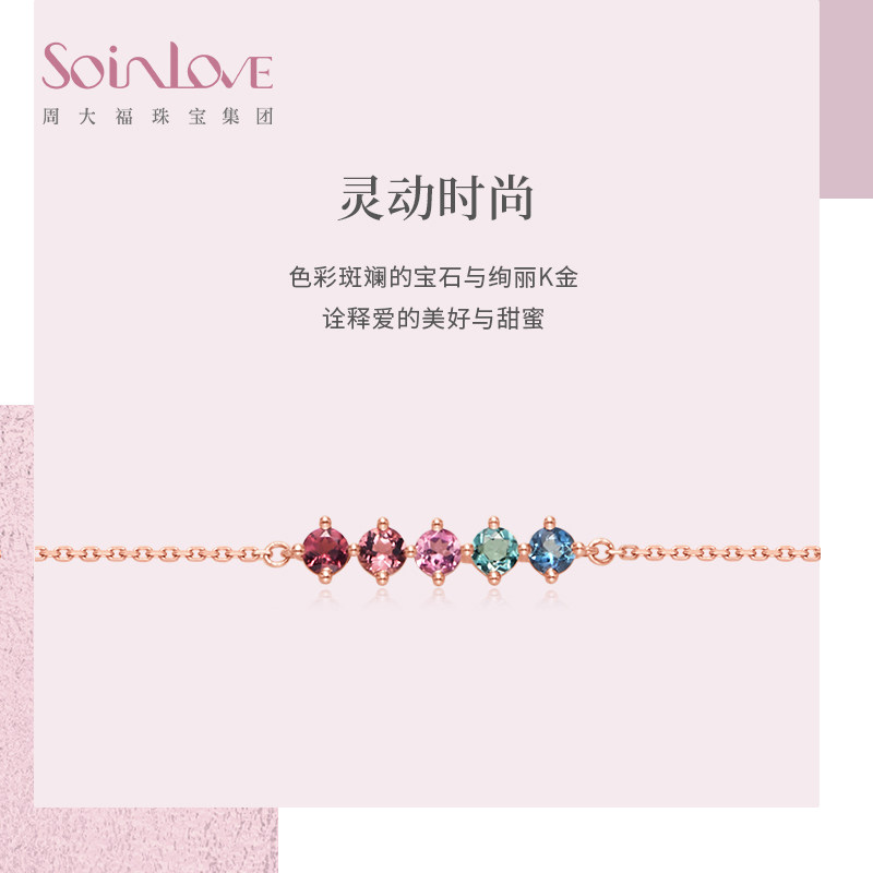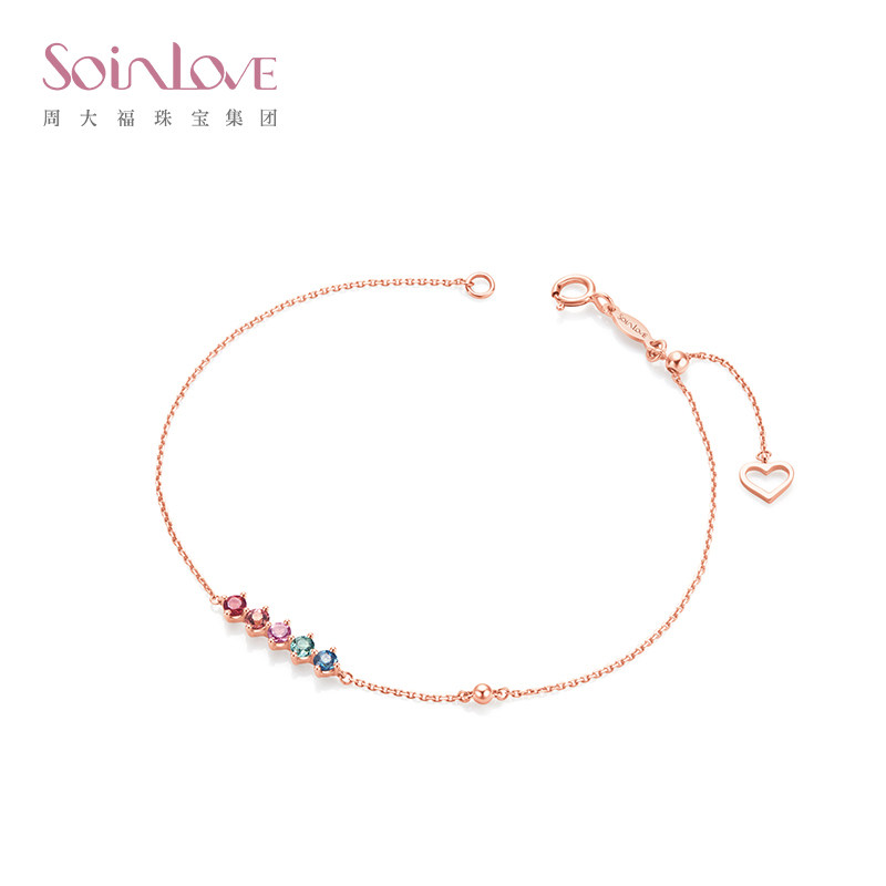 周大福SOINLOVE「彩虹」18K金碧玺宝石手链VV31生日礼物