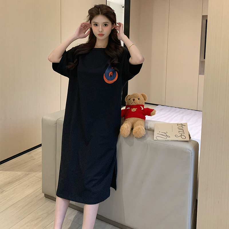 夏季韩版睡裙女薄款纯棉带胸垫短袖家居服大码宽松外穿中长款睡衣