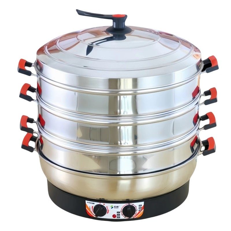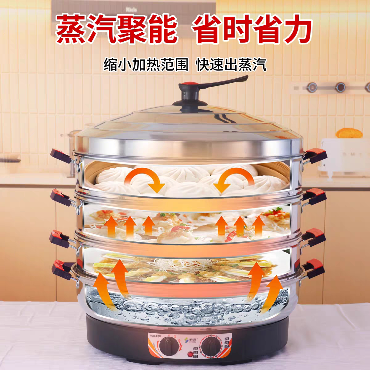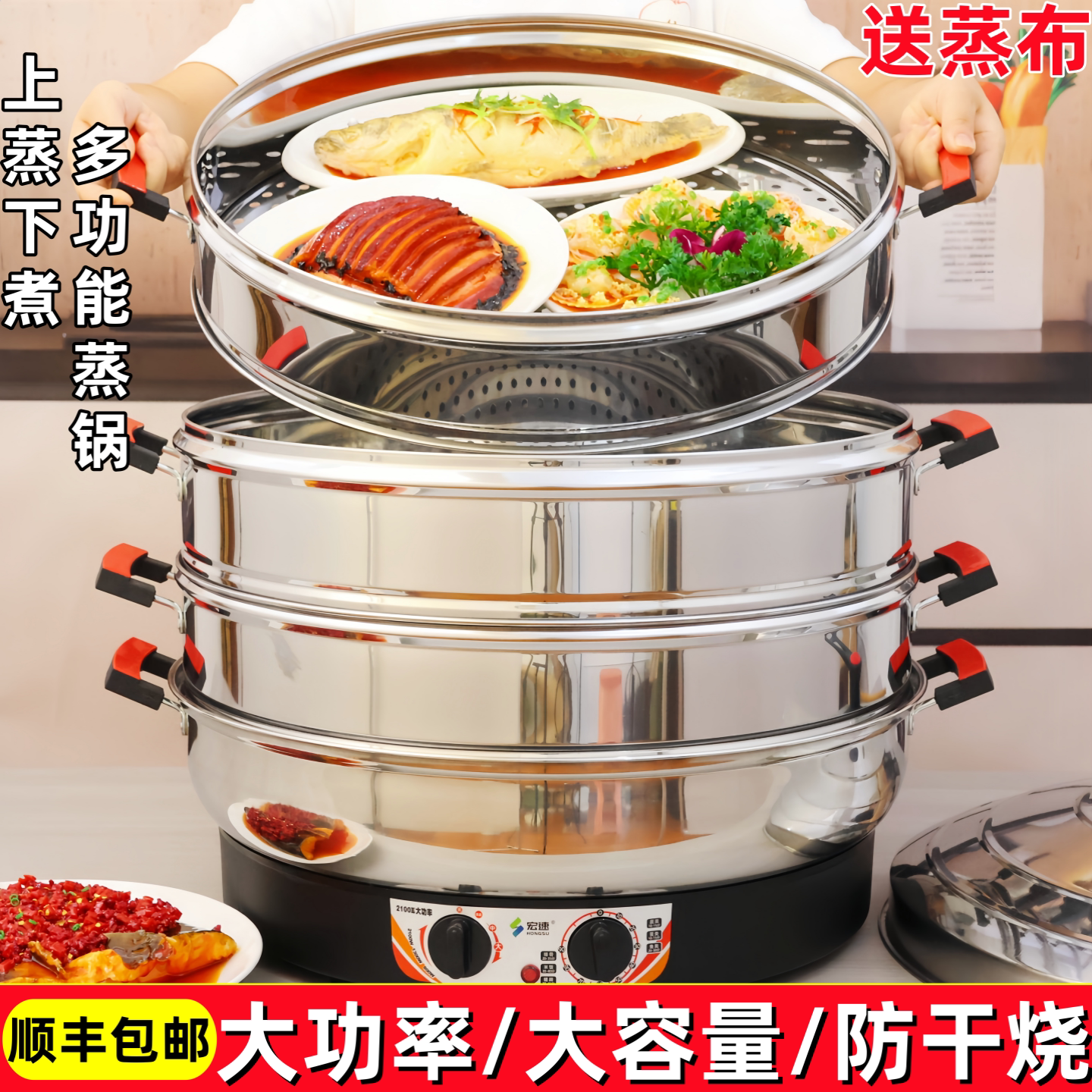 超大容量电蒸锅多功能家用商用不锈钢三层电蒸笼蒸煮一体自动断电