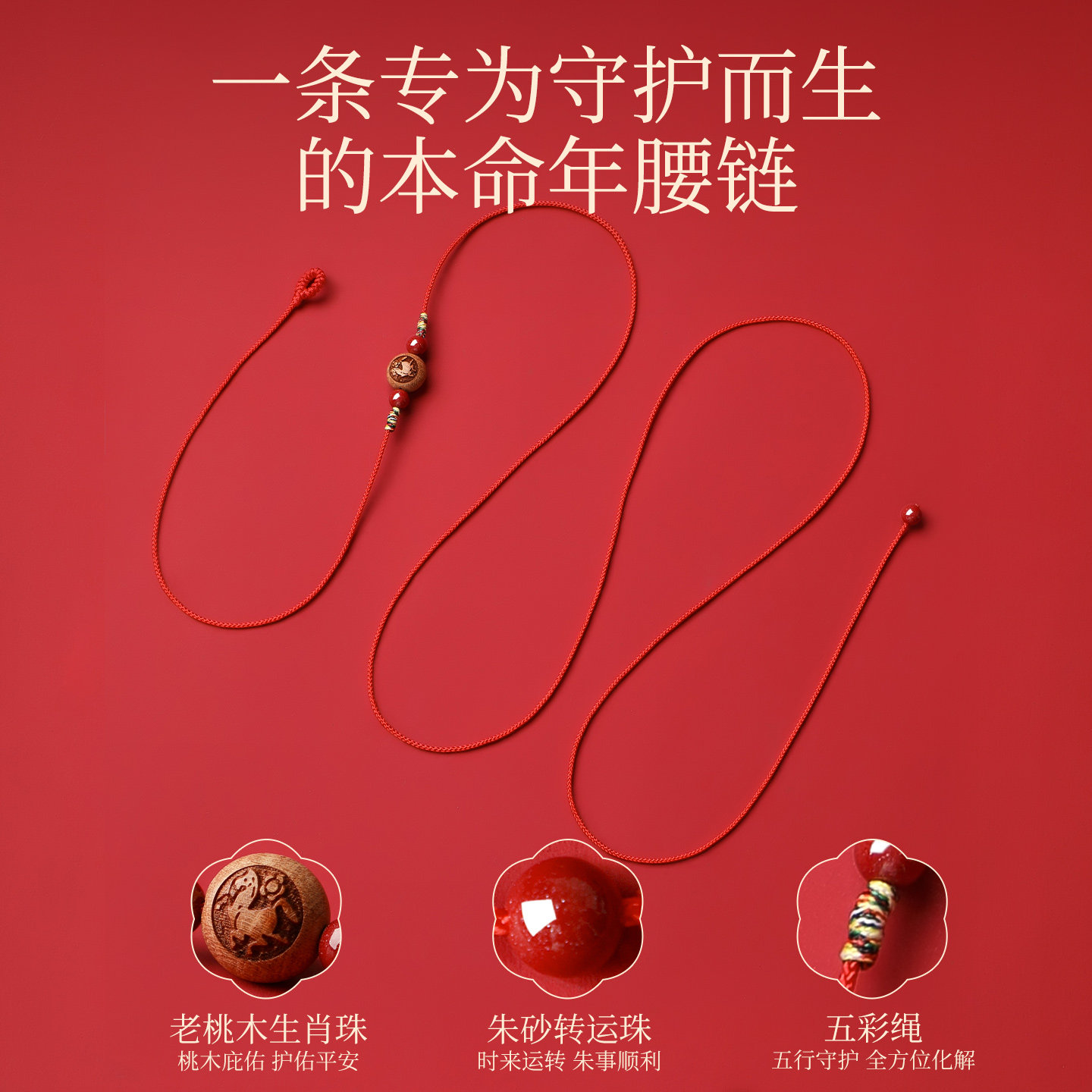 2026马年本命年红绳可调腰链