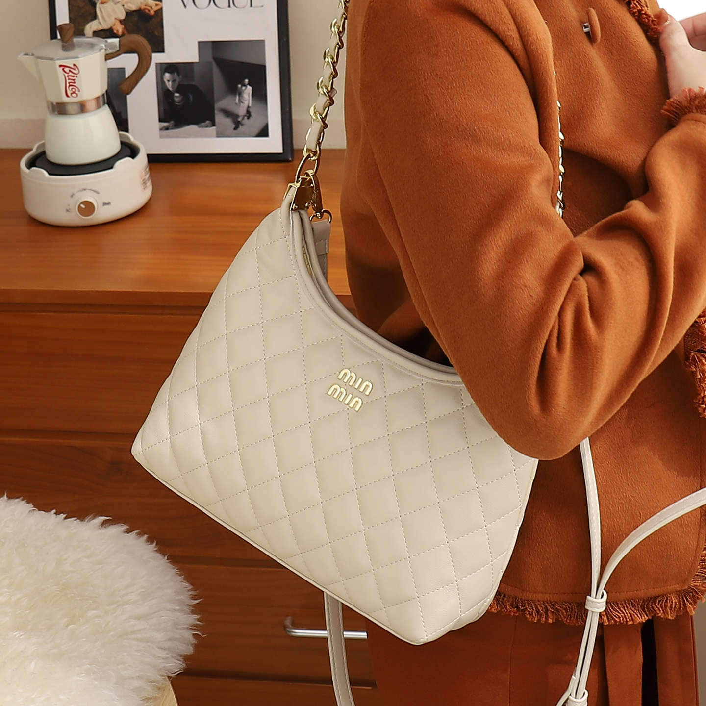 轻奢小香风菱格链条包包女式2025新款单肩斜挎包小众腋下包hobo包