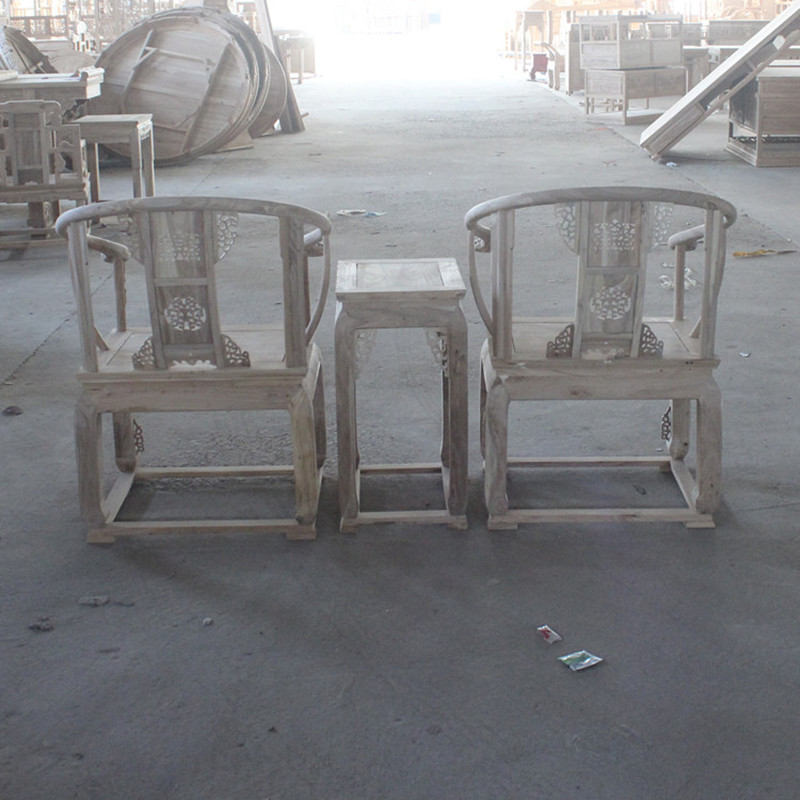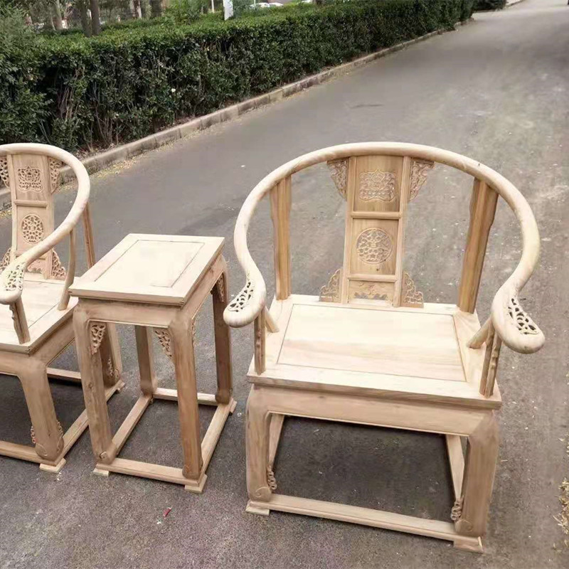 老榆木皇宫椅三件套中式实木仿古家具圈椅太师椅官帽椅白茬白坯胚