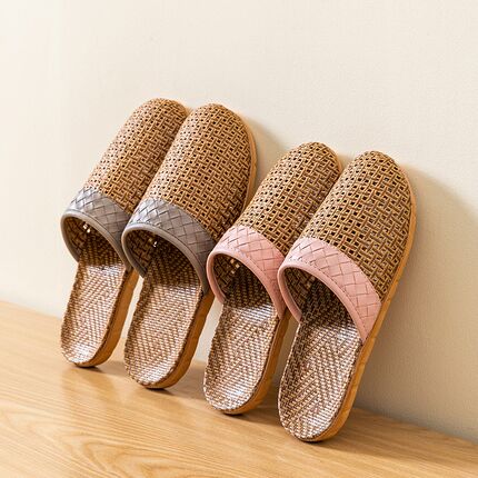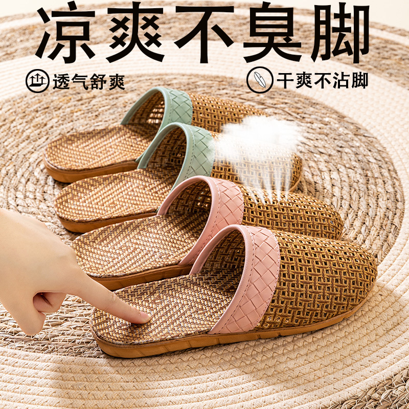 夏季藤草编织亚麻拖鞋包头夏天女家用室内防滑情侣竹席凉拖男居家